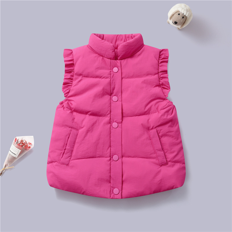2025 새로운 어린이 다운 조끼 가을, 겨울 한국어 버전 소녀 아기 따뜻한 조끼 소녀 레이스 양복 조끼