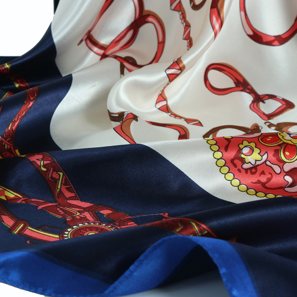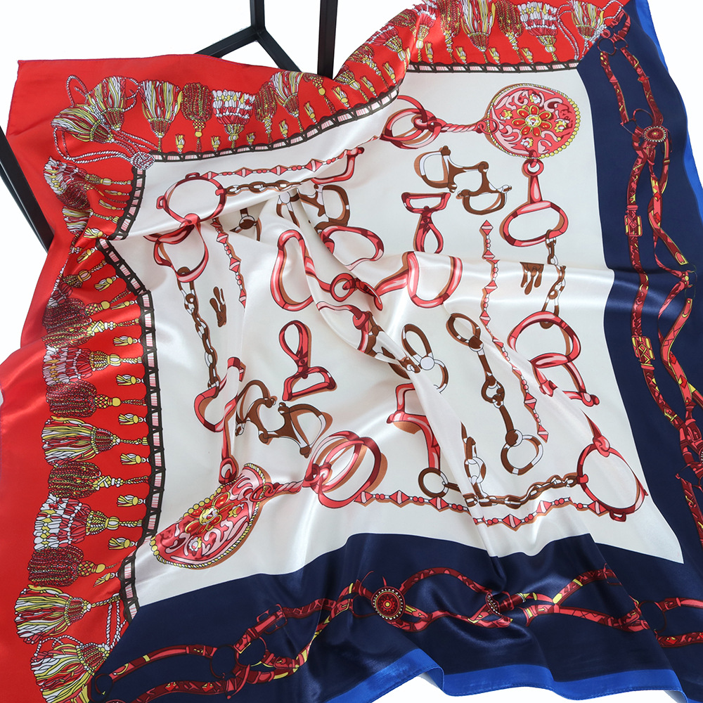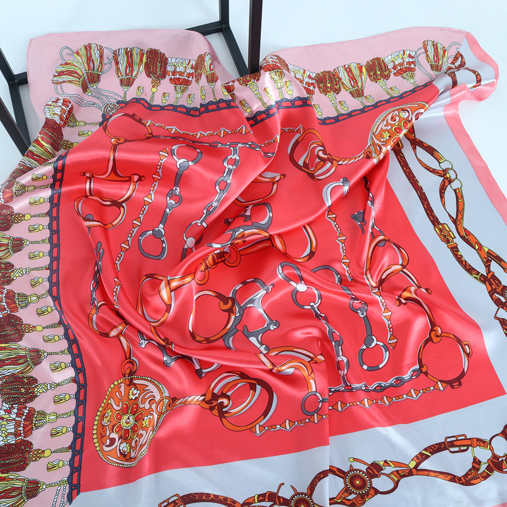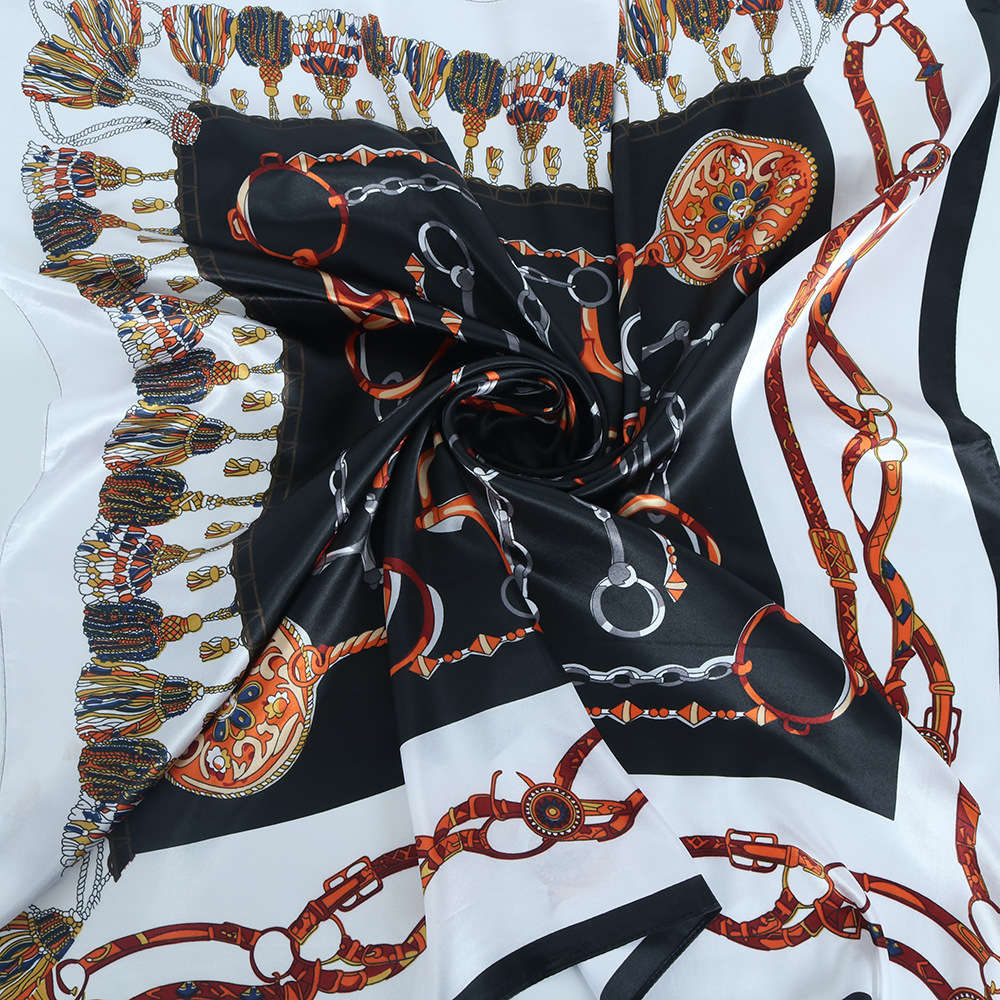 유럽과 미국 체인 프린트 스카프 90cm 새틴 모조 실크 예술 복고풍 스카프 세트 액세서리 스카프스토어 가기