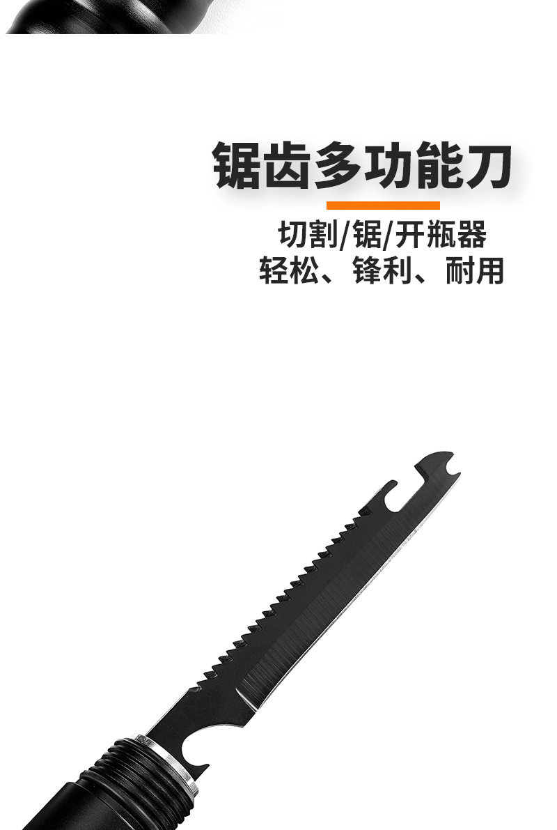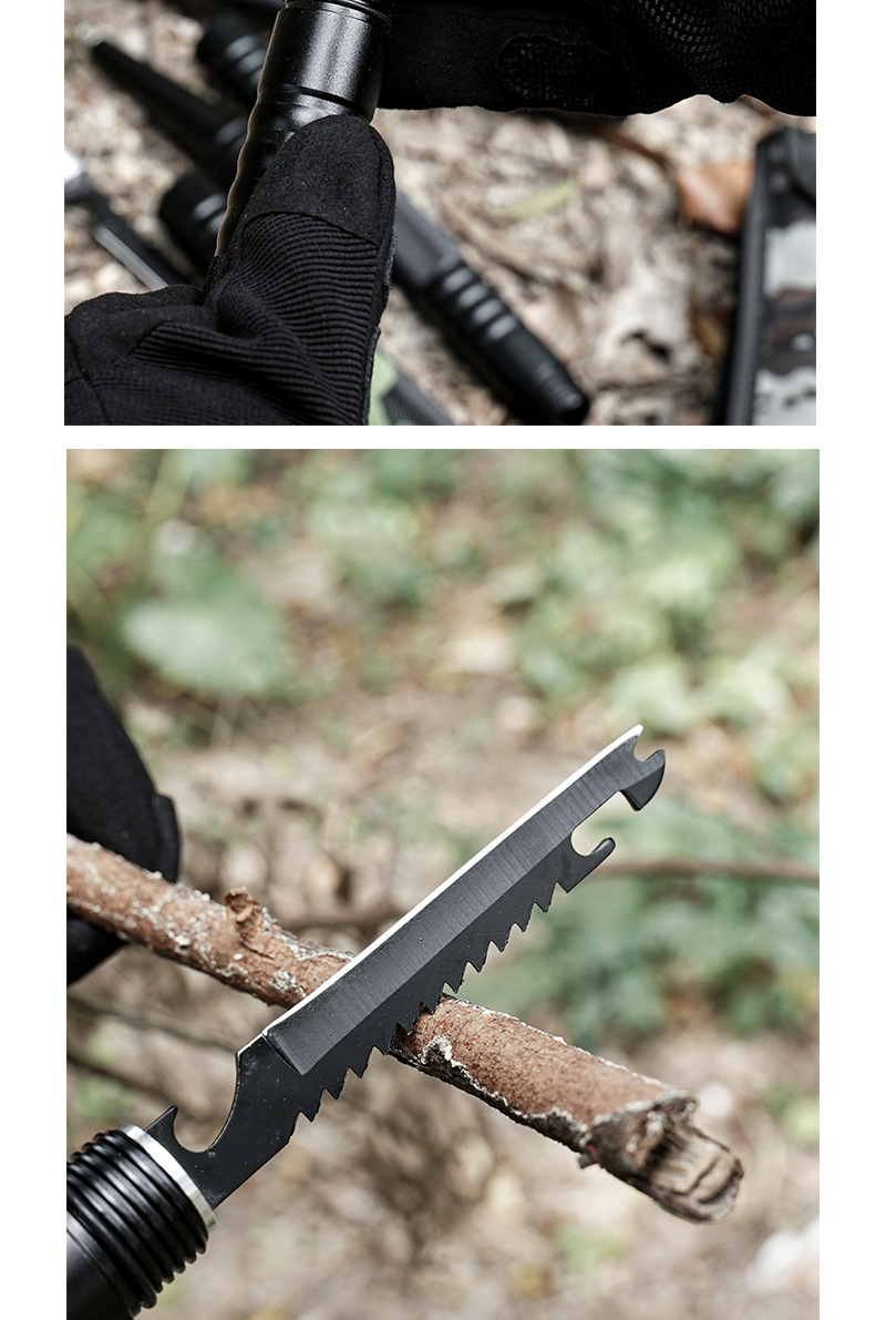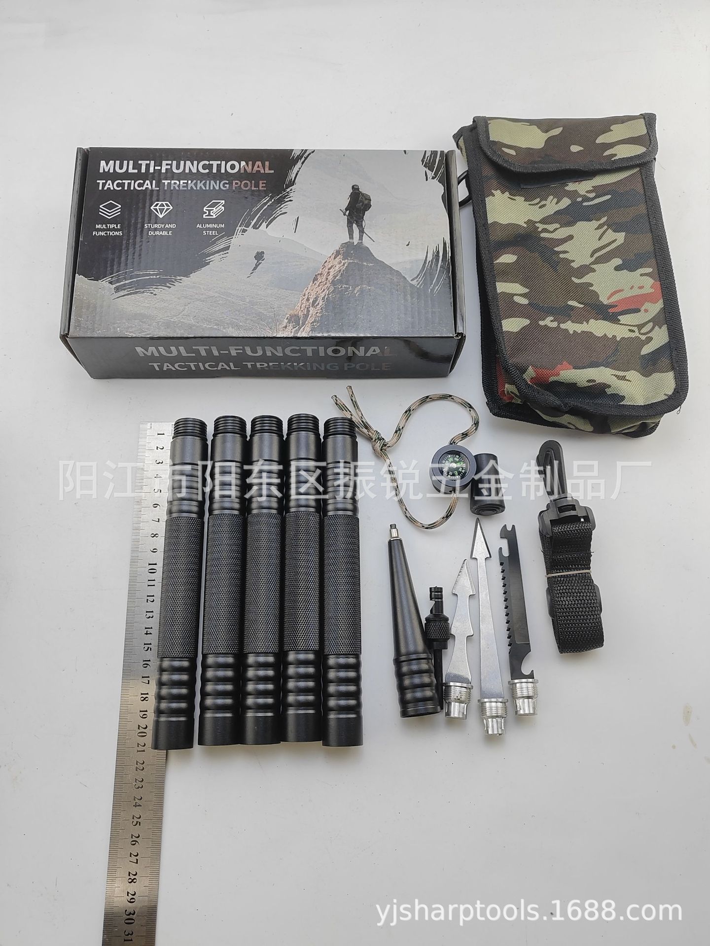 功能介绍: 叉鱼 割 刺 锯 破 撬 切 打火 口哨 防身棍 开瓶器 割绳 防身 求救口哨 指南针
