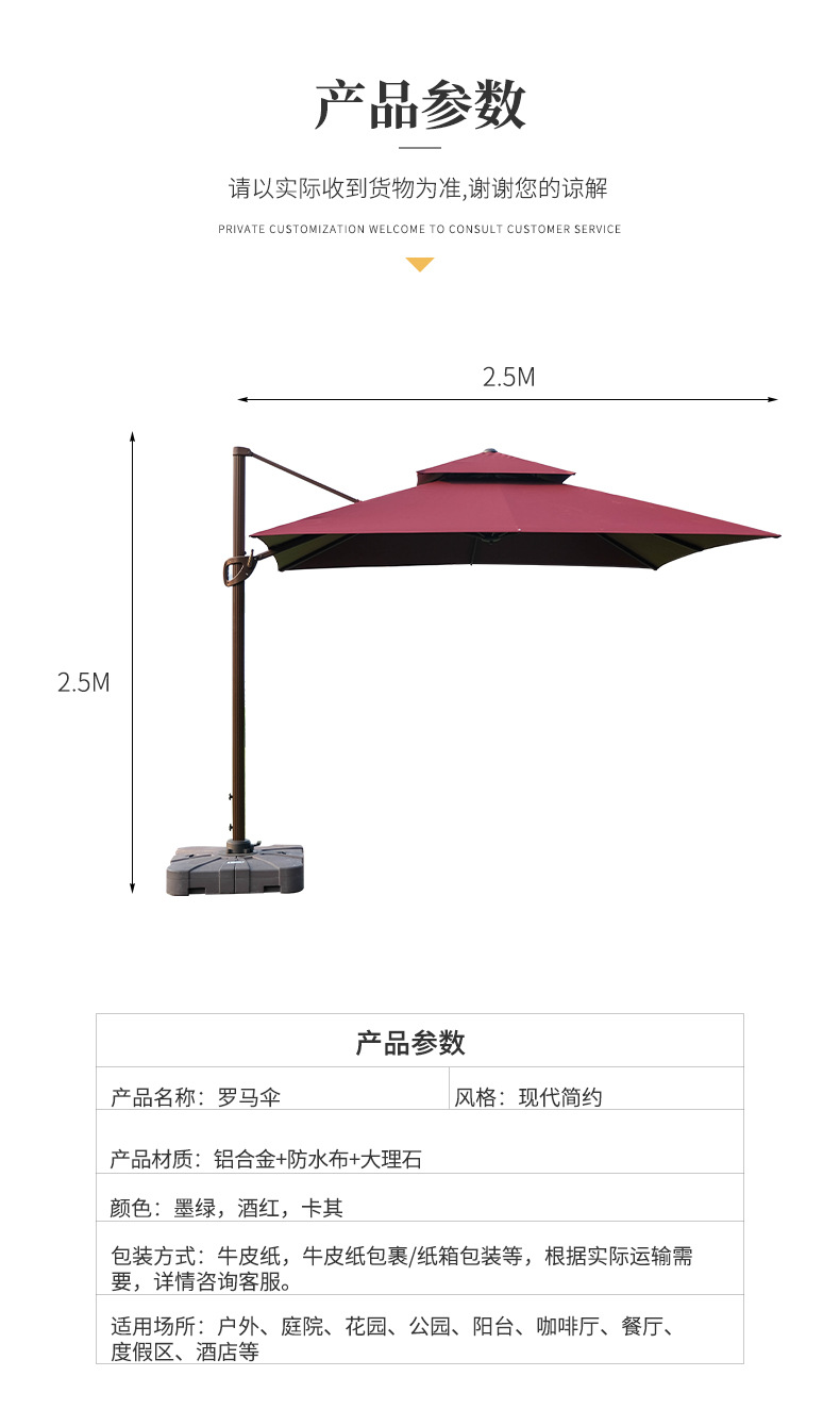 맞춤형 야외 파라솔, 빌라 정원, 야외 레저 안뜰 우산, 휴양지 호텔 발코니 태양 로마 우산스토어 가기