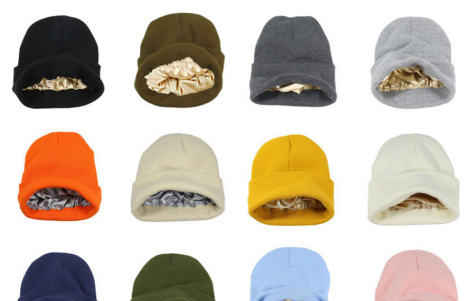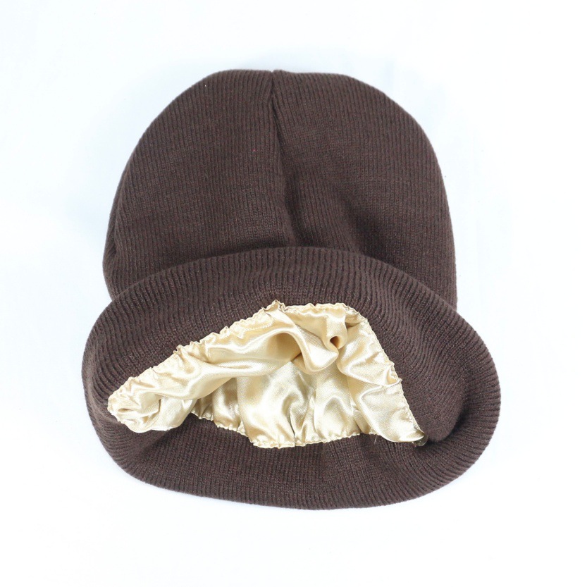 2021 가을과 겨울 유럽과 미국 새틴 안감 비니 모자 새틴 울 모자 남자 단색 해골 모자 여자 니트 모자