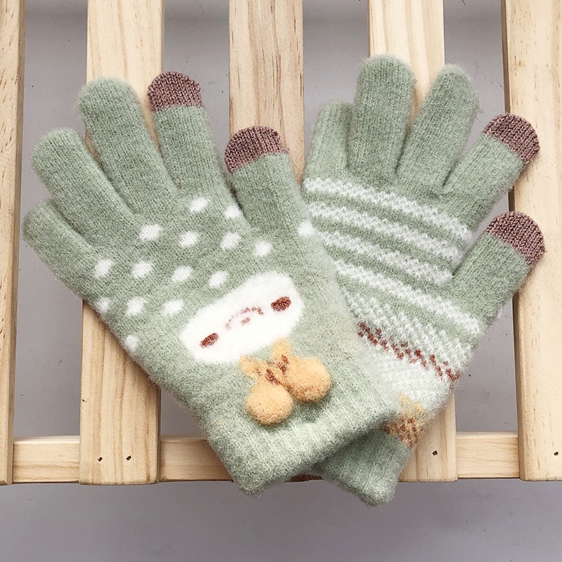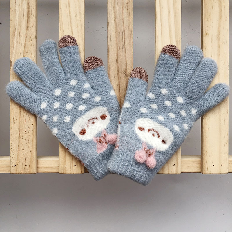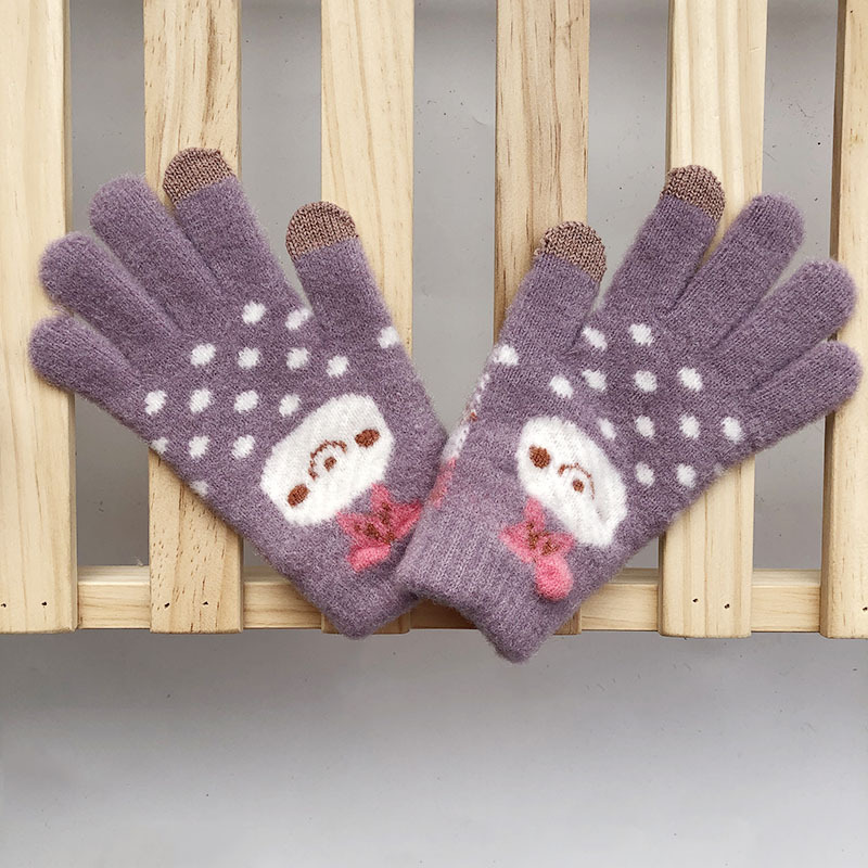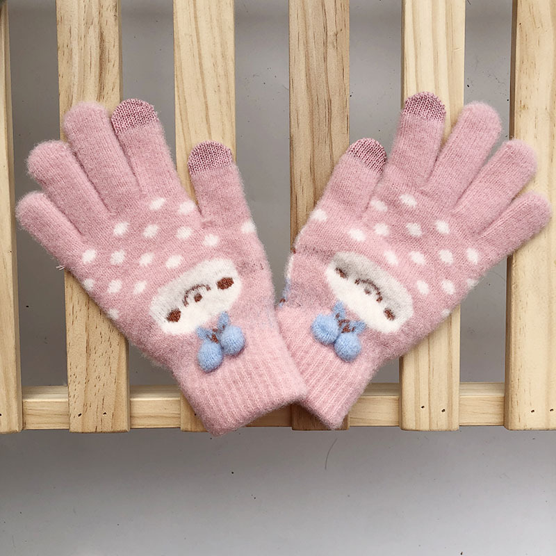 학생 겨울 따뜻한 장갑 여성용 기모 두꺼운 따뜻한 다섯 손가락 터치 스크린 중간 및 큰 어린이를위한 야외 방한 장갑