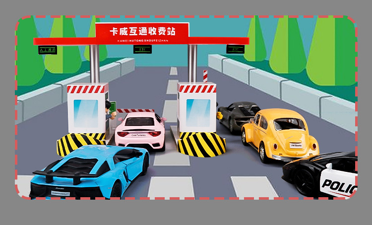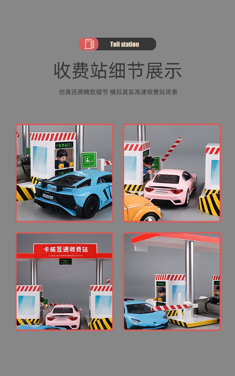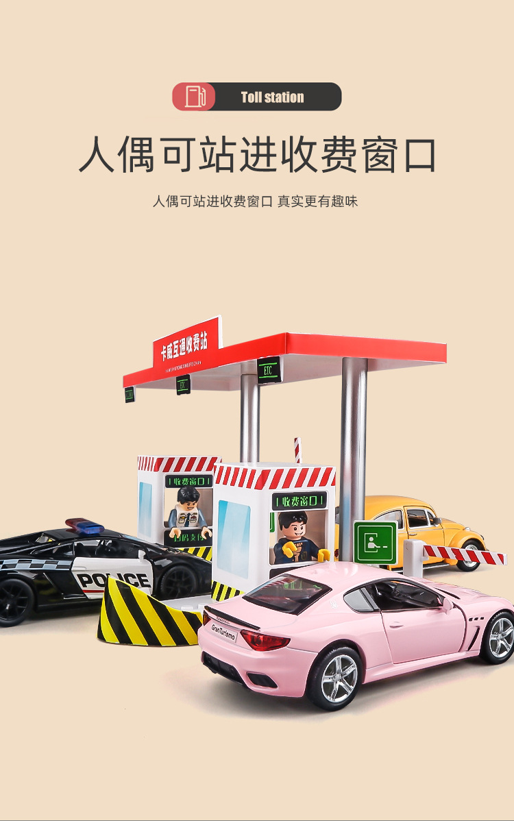 고속도로 요금소 장난감 난간 모형 합금 차 장면 세트 아이들 소년 장난감 차 모형스토어 가기