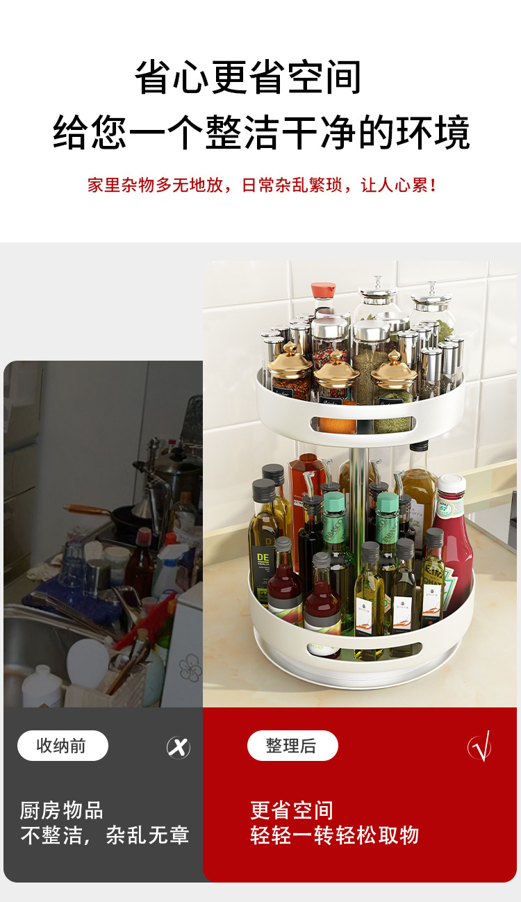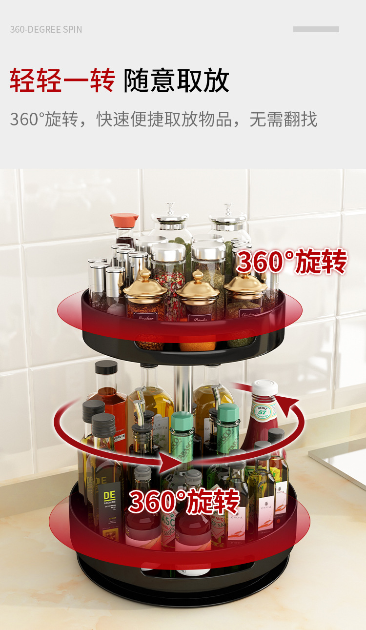 旋转调料架多功能厨房收纳置物架厨房单层双层调味架桌面托盘收纳