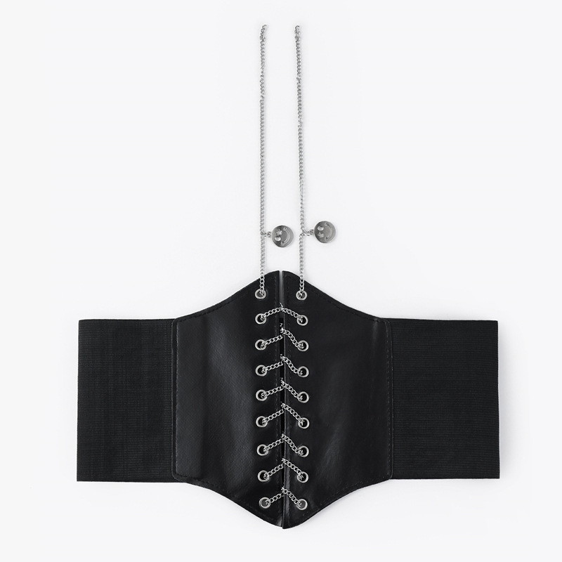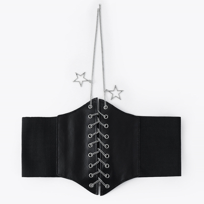 Amazon 여성용 탄성 허리띠 나비 체인 와이드 허리띠 전술 태국 탄성 음악 축제 힙합 벨트