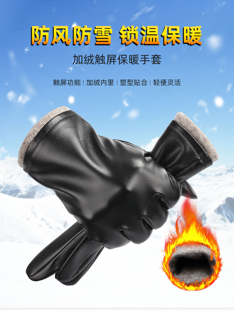 러시아 따뜻한 장갑 방풍 및 방수 pu 가죽 장갑 남성과 여성 비즈니스 벨벳 장갑 회사 직원 복지