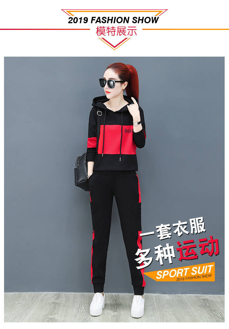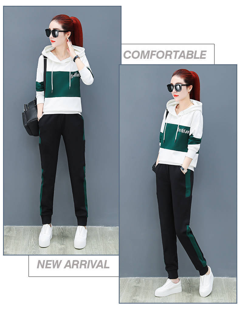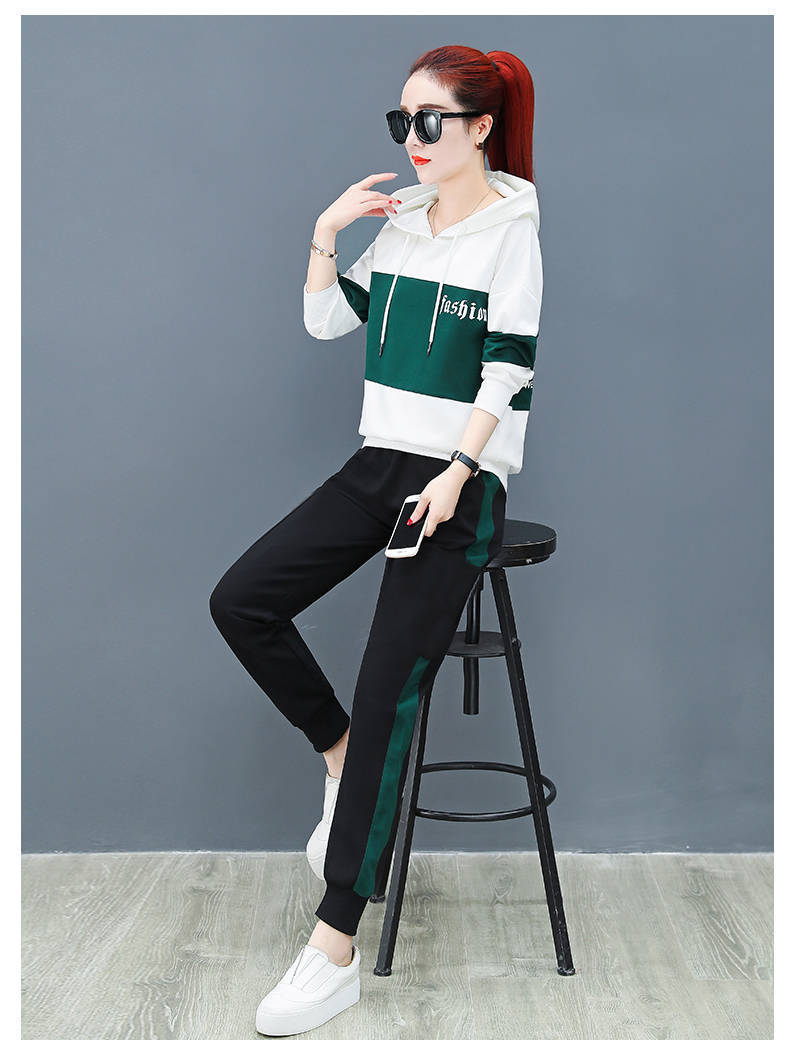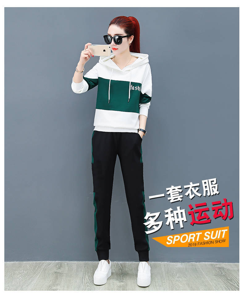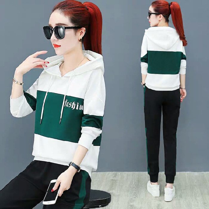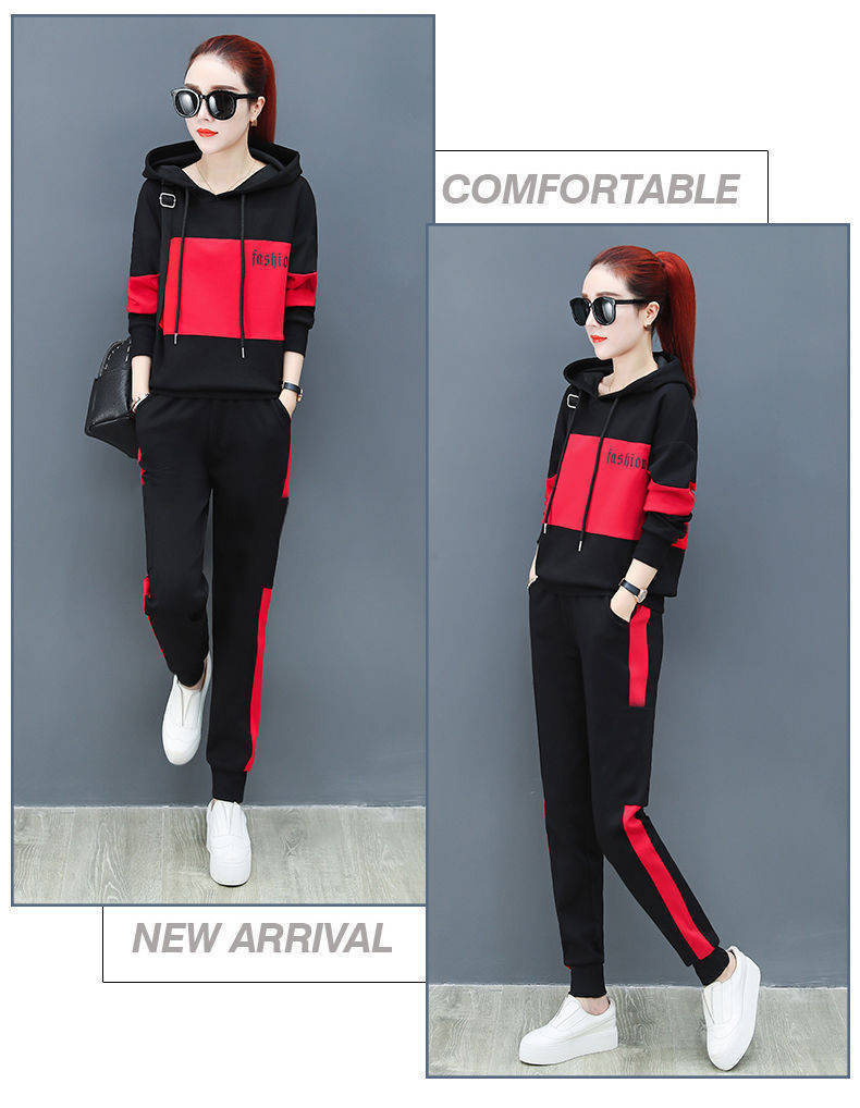2022 봄과 가을 신상품 러닝 스포츠 세트 여성 캐주얼 한국 스타일 느슨한 슬리밍 후드 스웨터 플러스 사이즈 투피스 트렌디스토어 가기