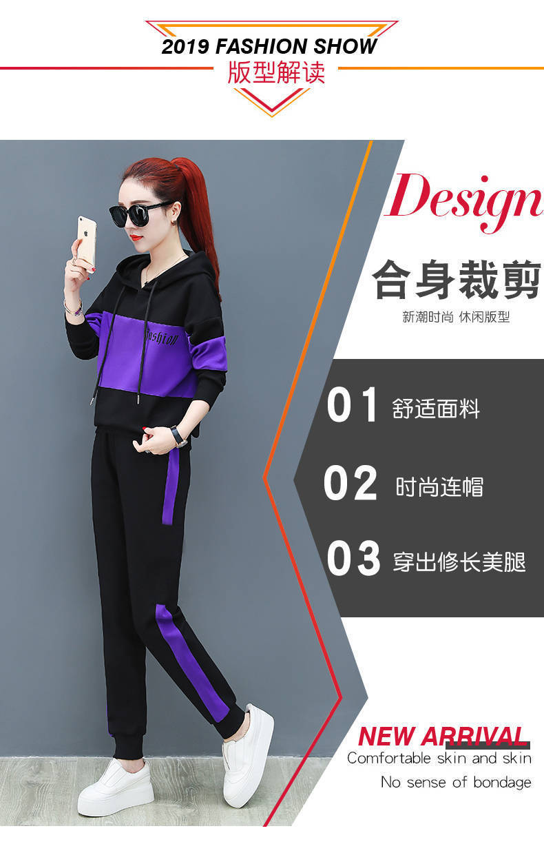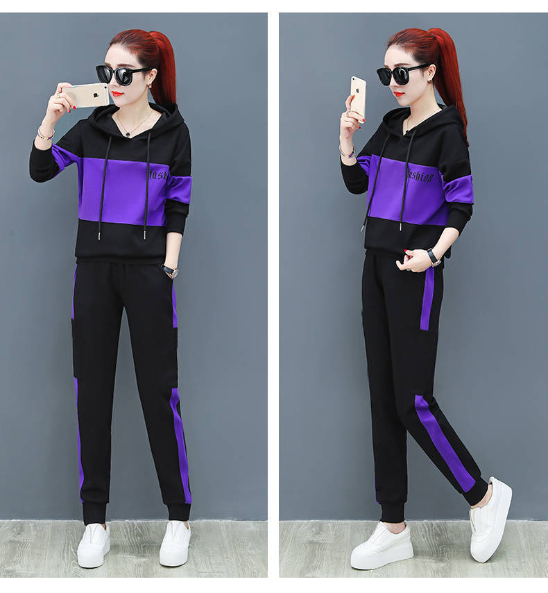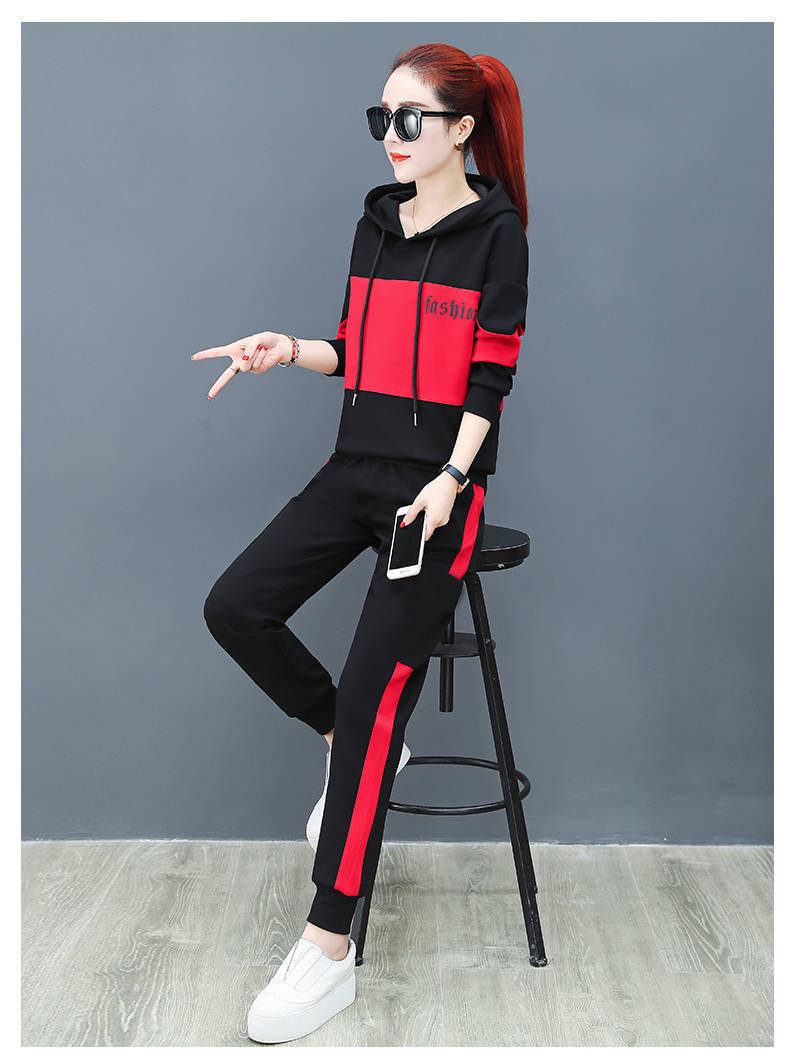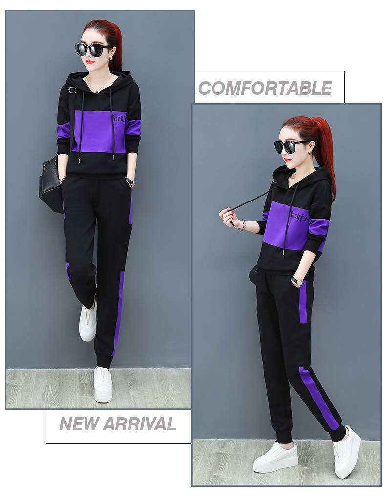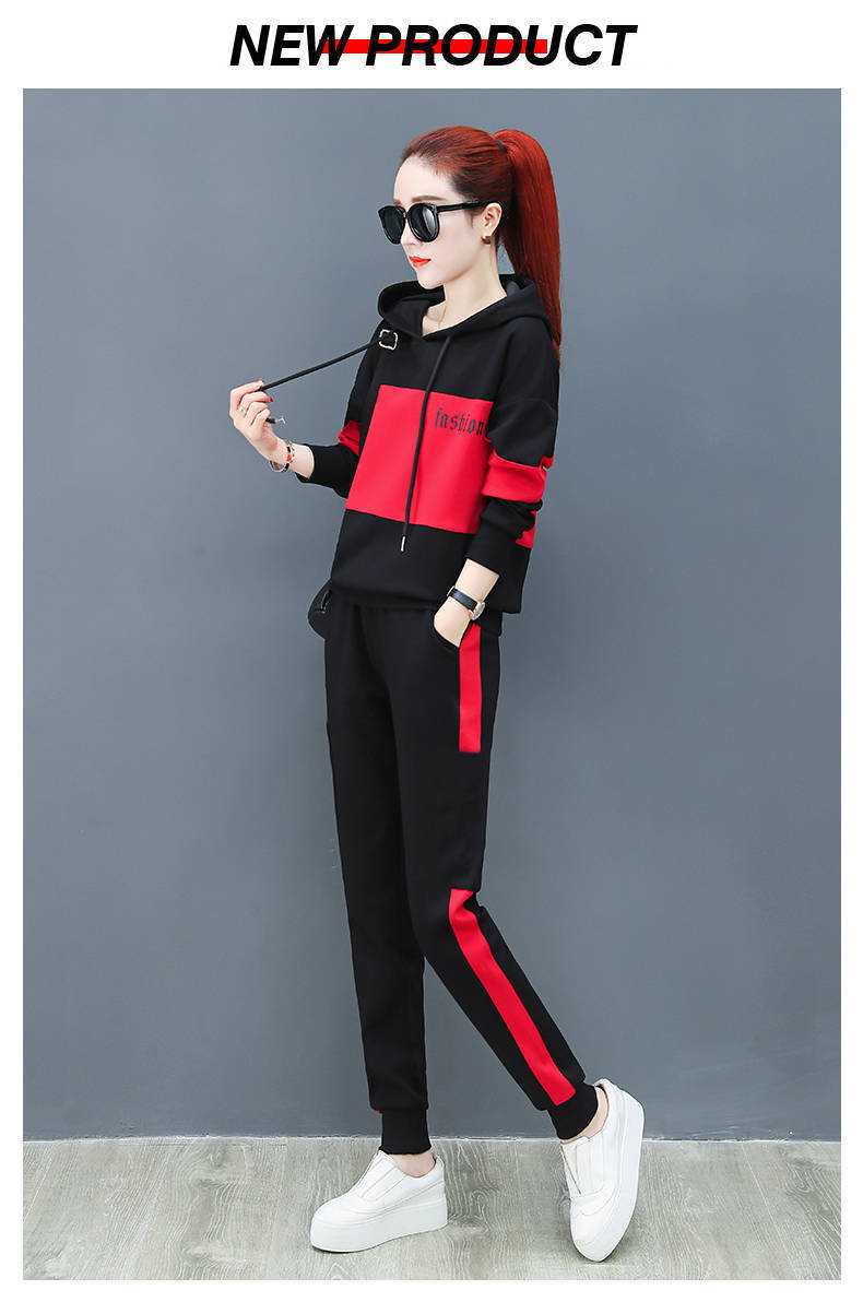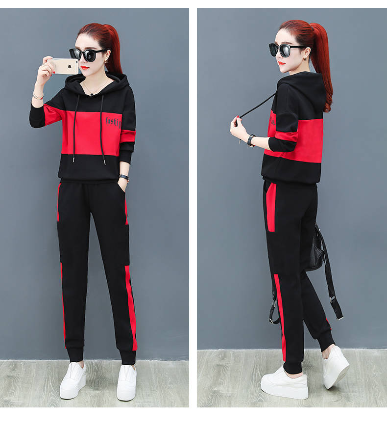 2022 봄과 가을 신상품 러닝 스포츠 세트 여성 캐주얼 한국 스타일 느슨한 슬리밍 후드 스웨터 플러스 사이즈 투피스 트렌디스토어 가기