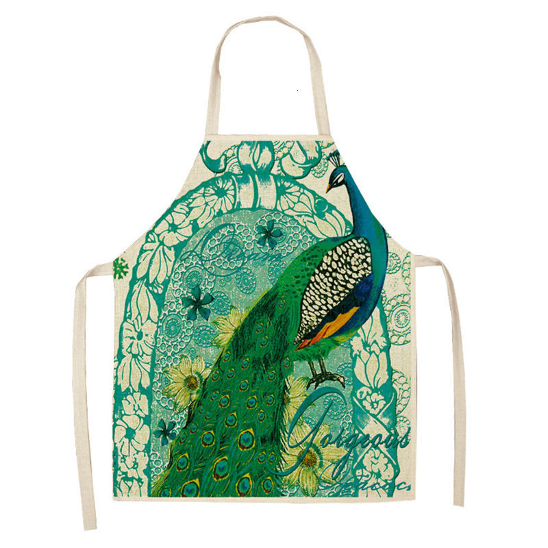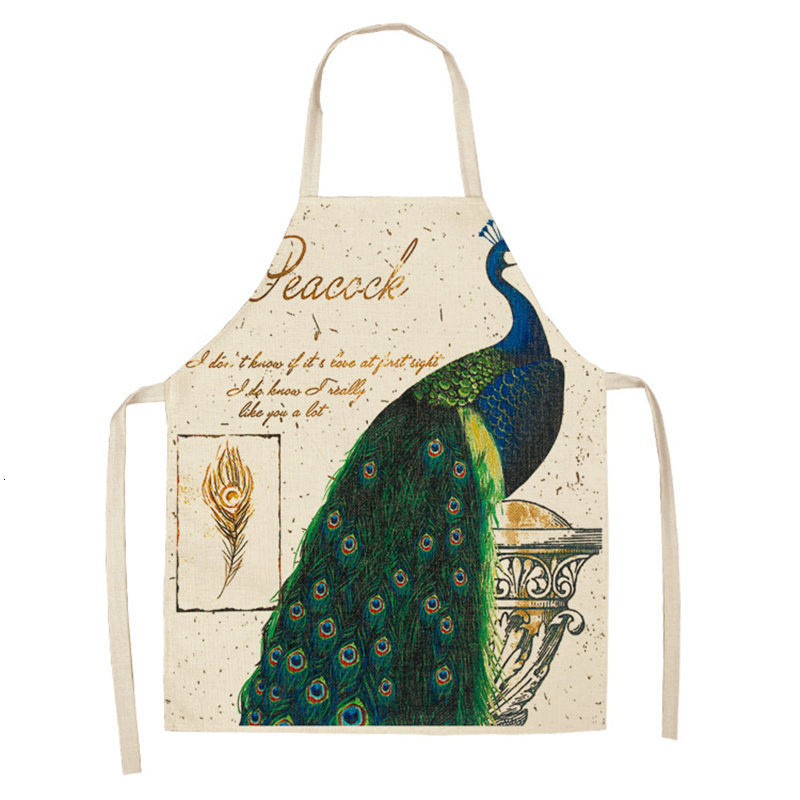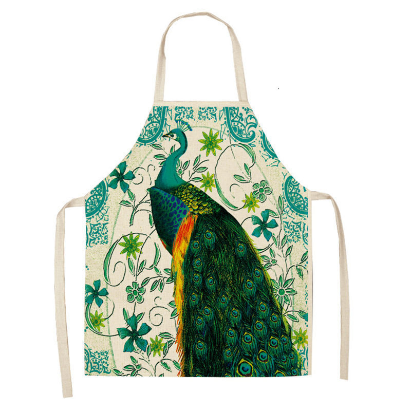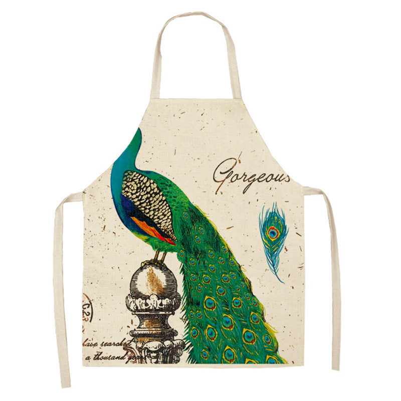 빈티지 공작 프린트 주방 앞치마 55x68 cm 여성 가족 베이킹 커피 숍 청소 액세서리 코튼 린넨 턱받이