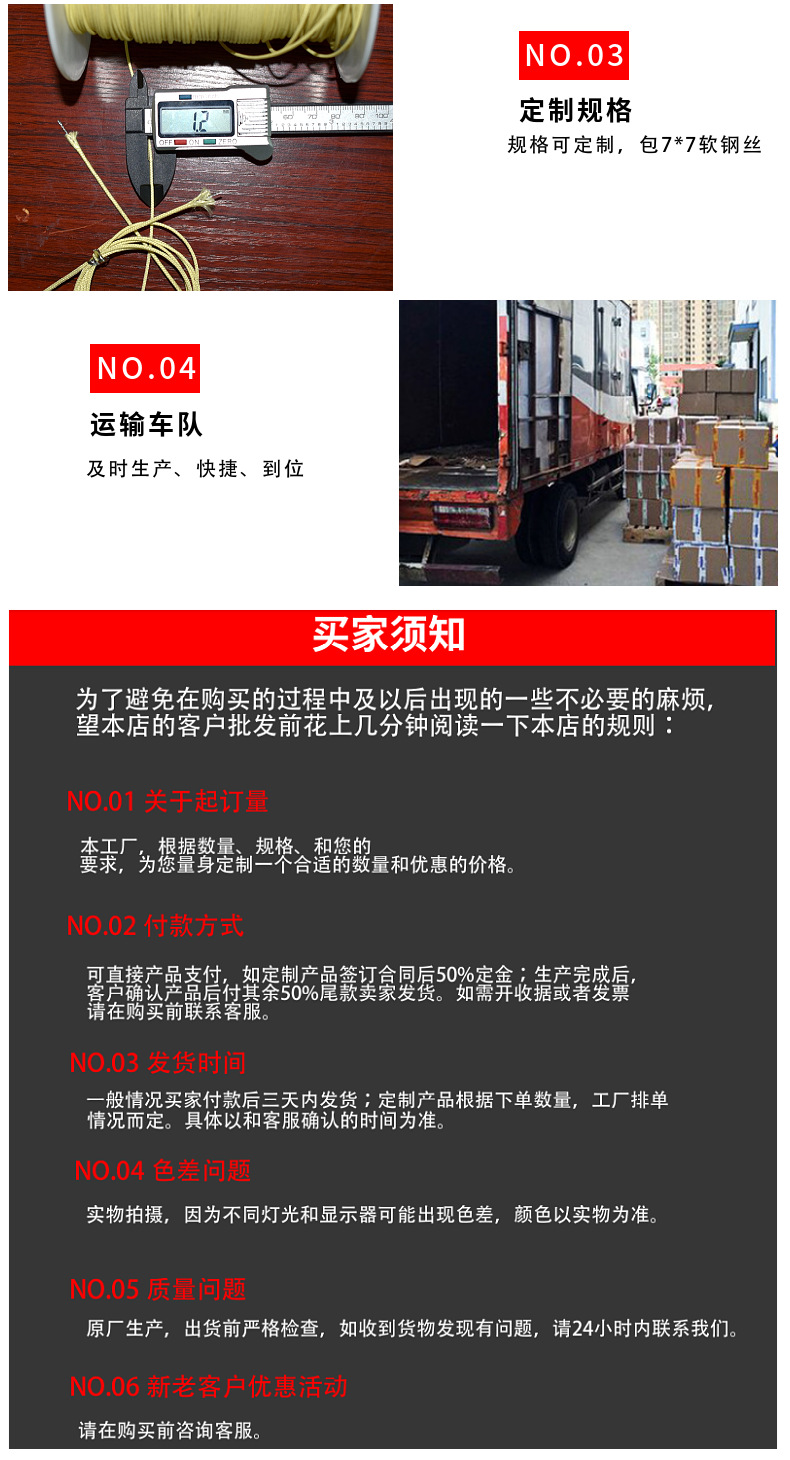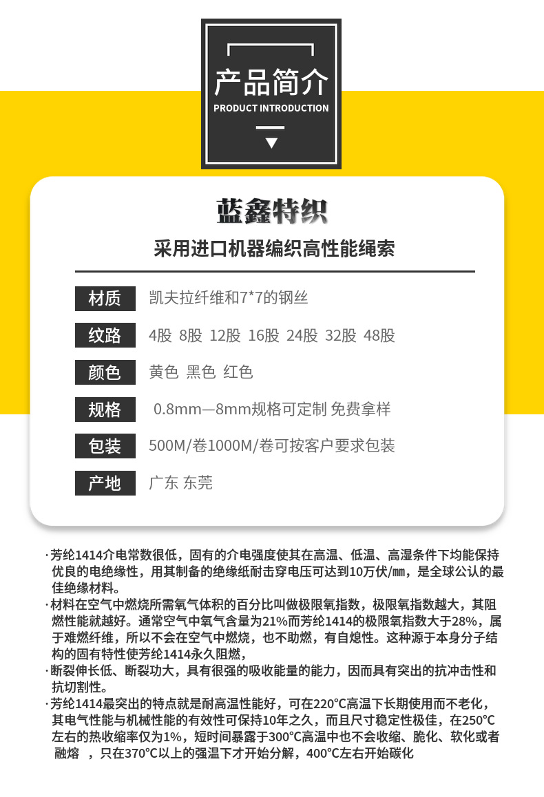 • 노란색 * 1.5mm 케블라 백 7*7 스틸 와이어