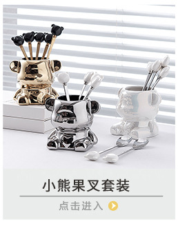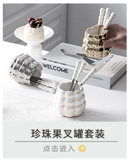 북유럽 과일 포크와 스푼 가정용 스테인레스 스틸 과일 선택 커피 스푼 세라믹 저장 용기 세트 하이 엔드 월병 나이프와 포크