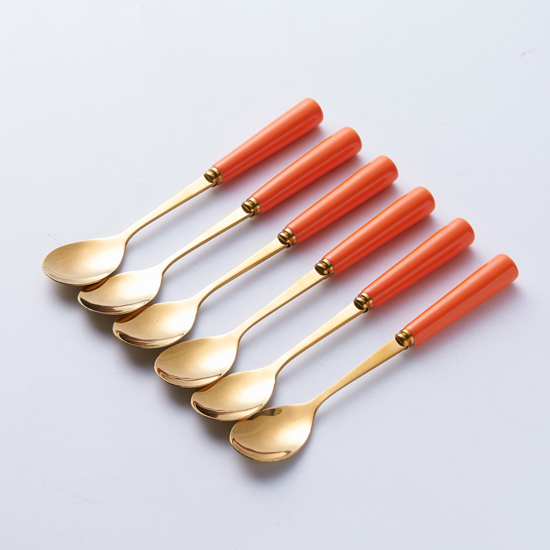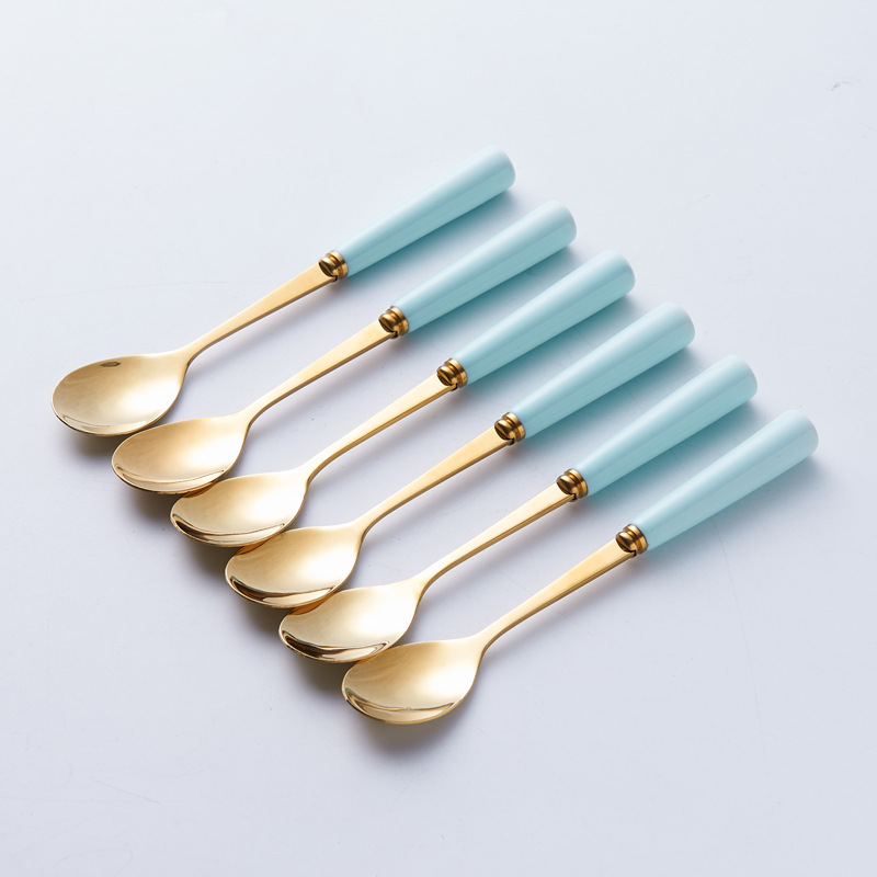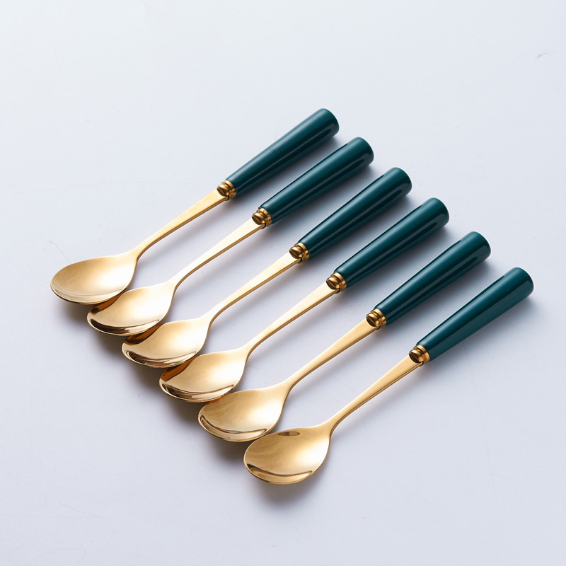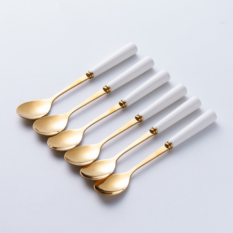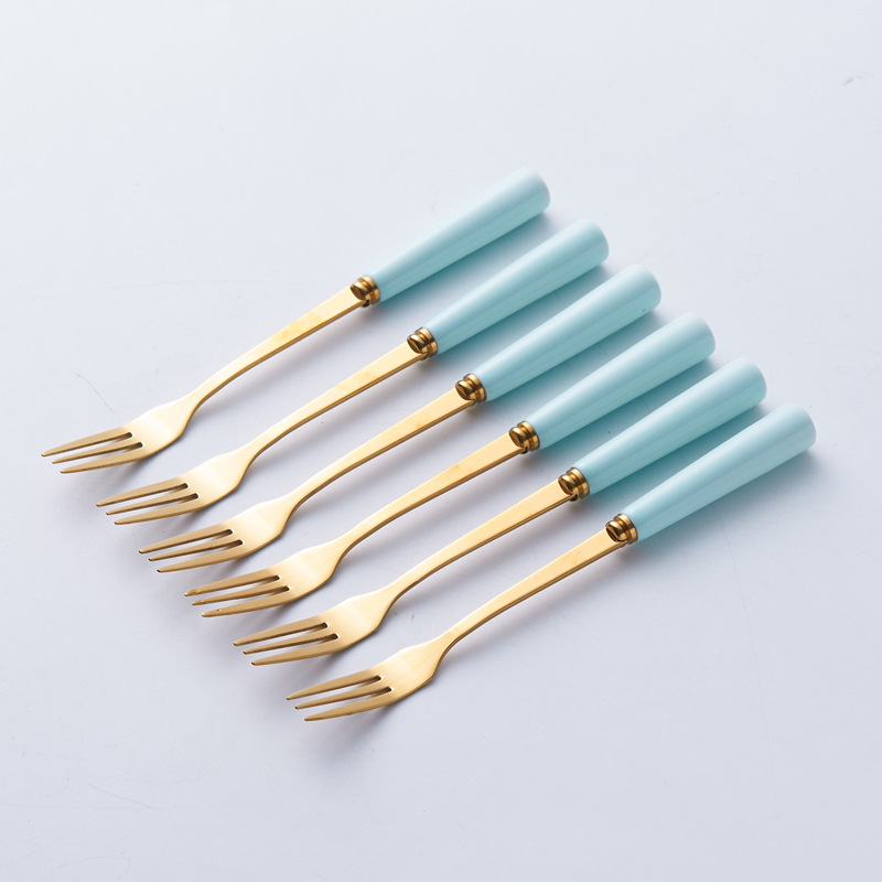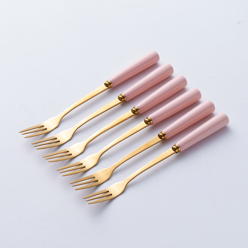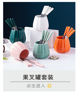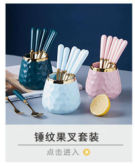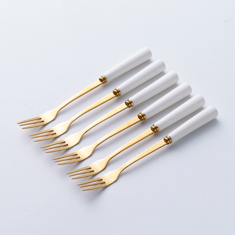 북유럽 과일 포크와 스푼 가정용 스테인레스 스틸 과일 선택 커피 스푼 세라믹 저장 용기 세트 하이 엔드 월병 나이프와 포크스토어 가기