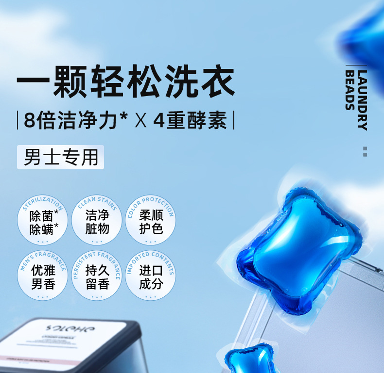 바람과 비 남성 세탁 비즈 향수형 지속 향기 세탁 세제 볼 효소 살균 진드기 제거 1 명 5 명스토어 가기