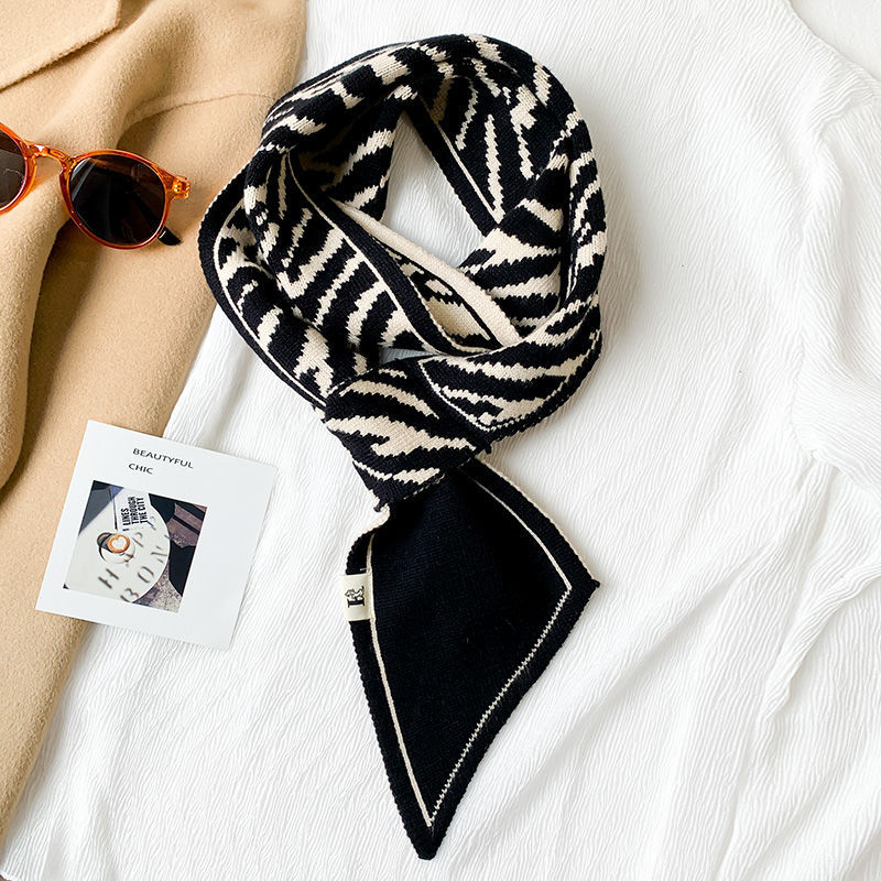 Houndstooth 스몰 스카프 여성의 가을과 겨울 한국식 모든 매치 인 트렌디 한 두꺼운 따뜻한 장식 목 보호 목 스카프