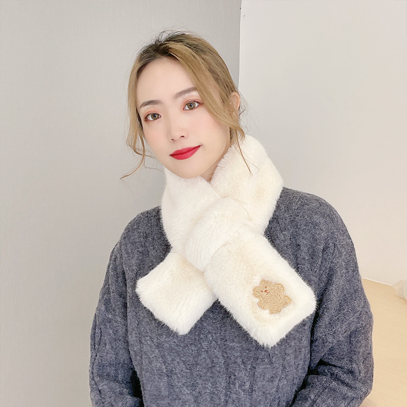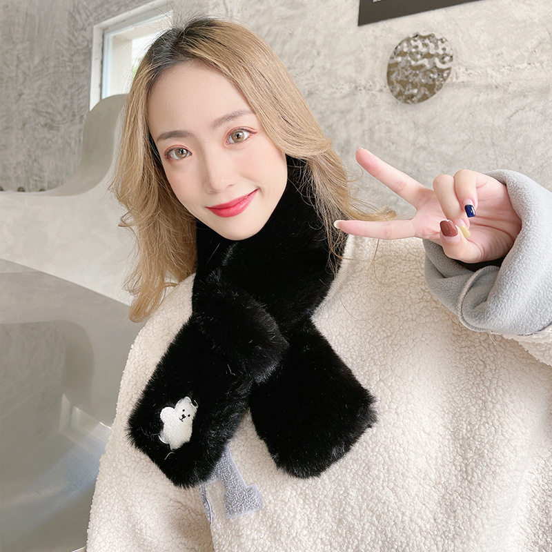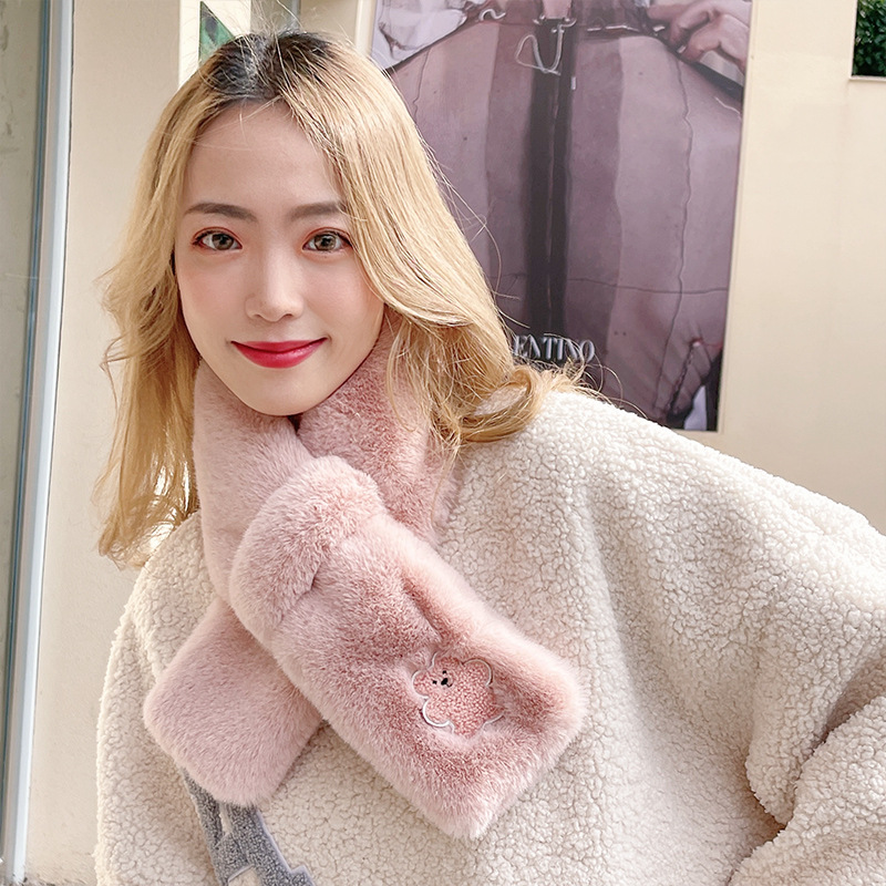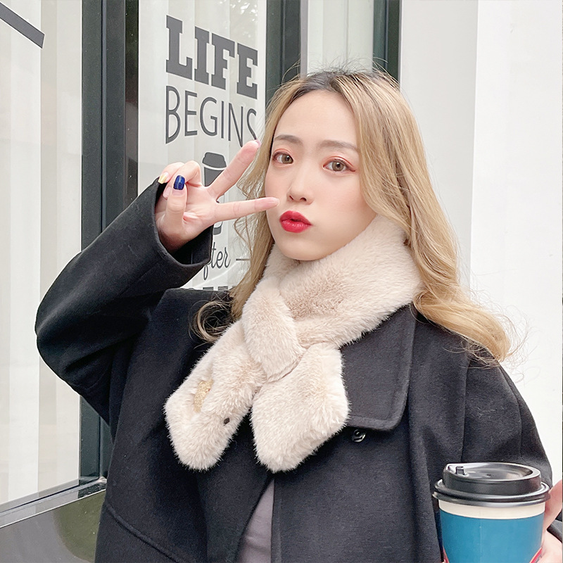가을과 겨울 새로운 가죽 버클 인터넷 인기있는 모든 매치 크로스 모피 플러시 스카프 여성의 한국 모조 토끼 모피 따뜻한 목 보호 스카프