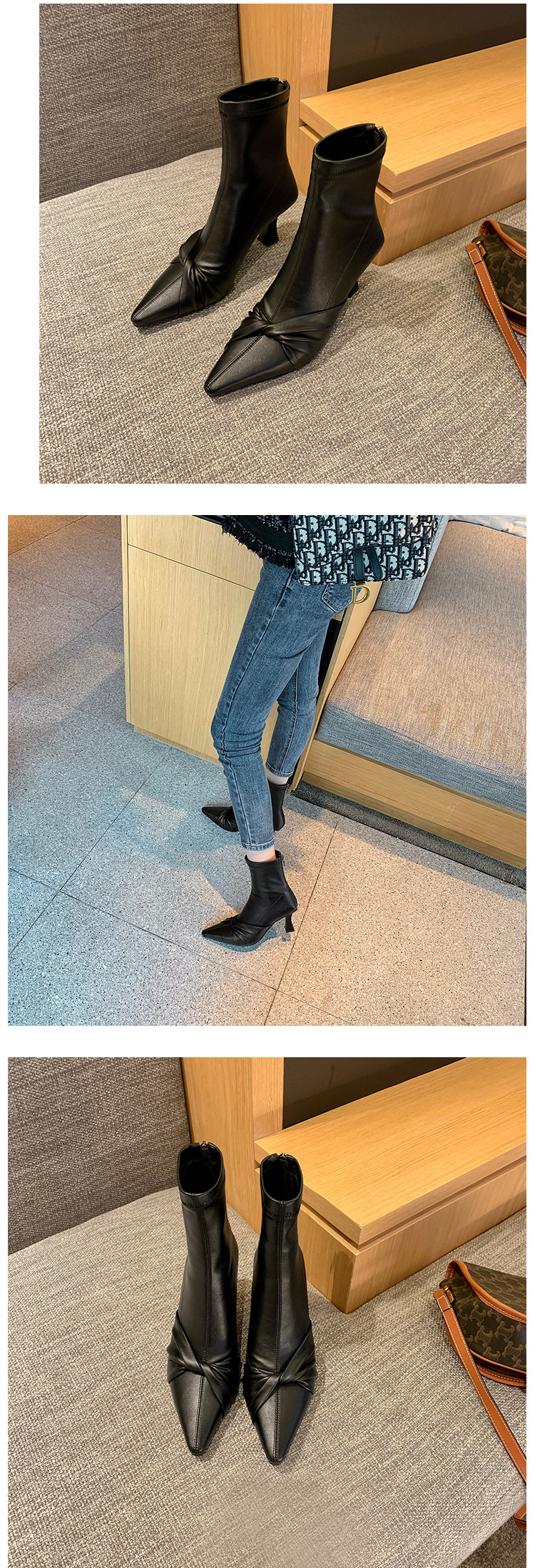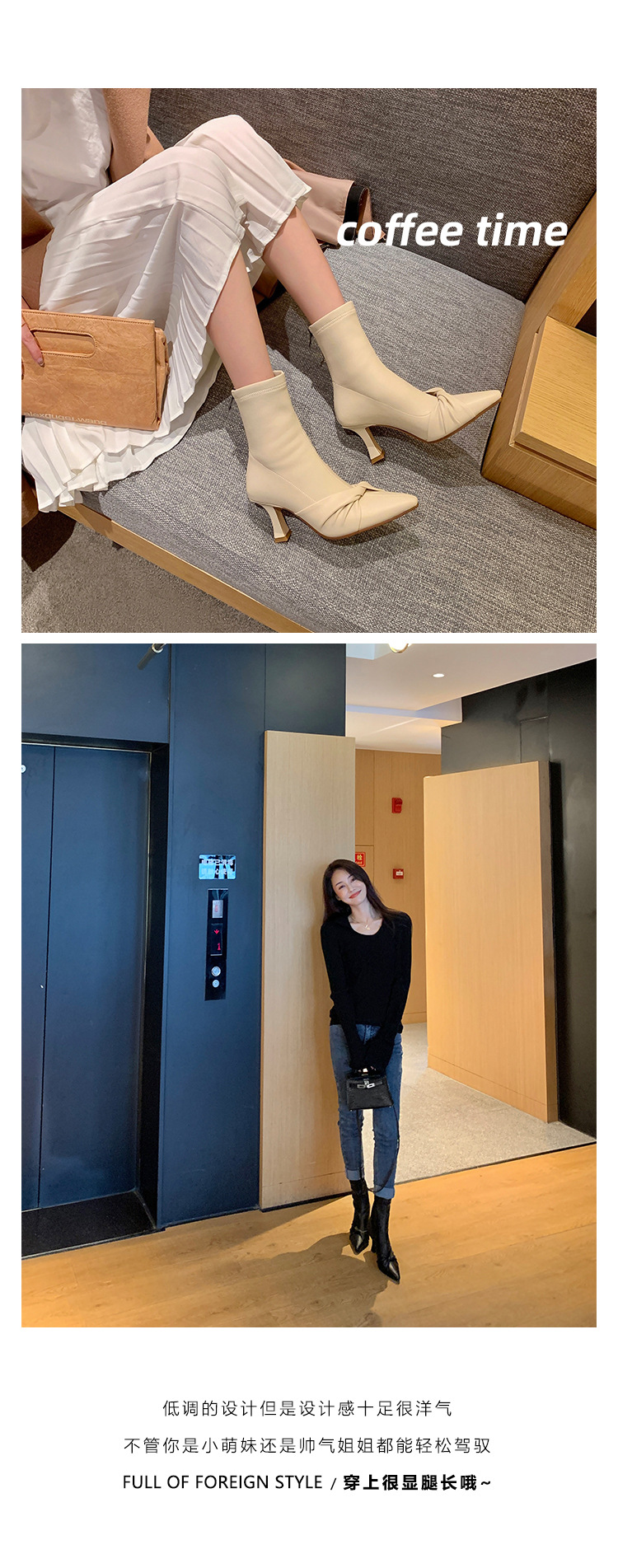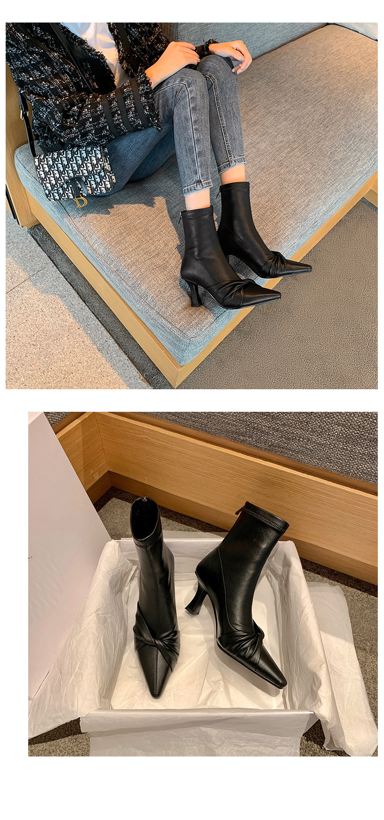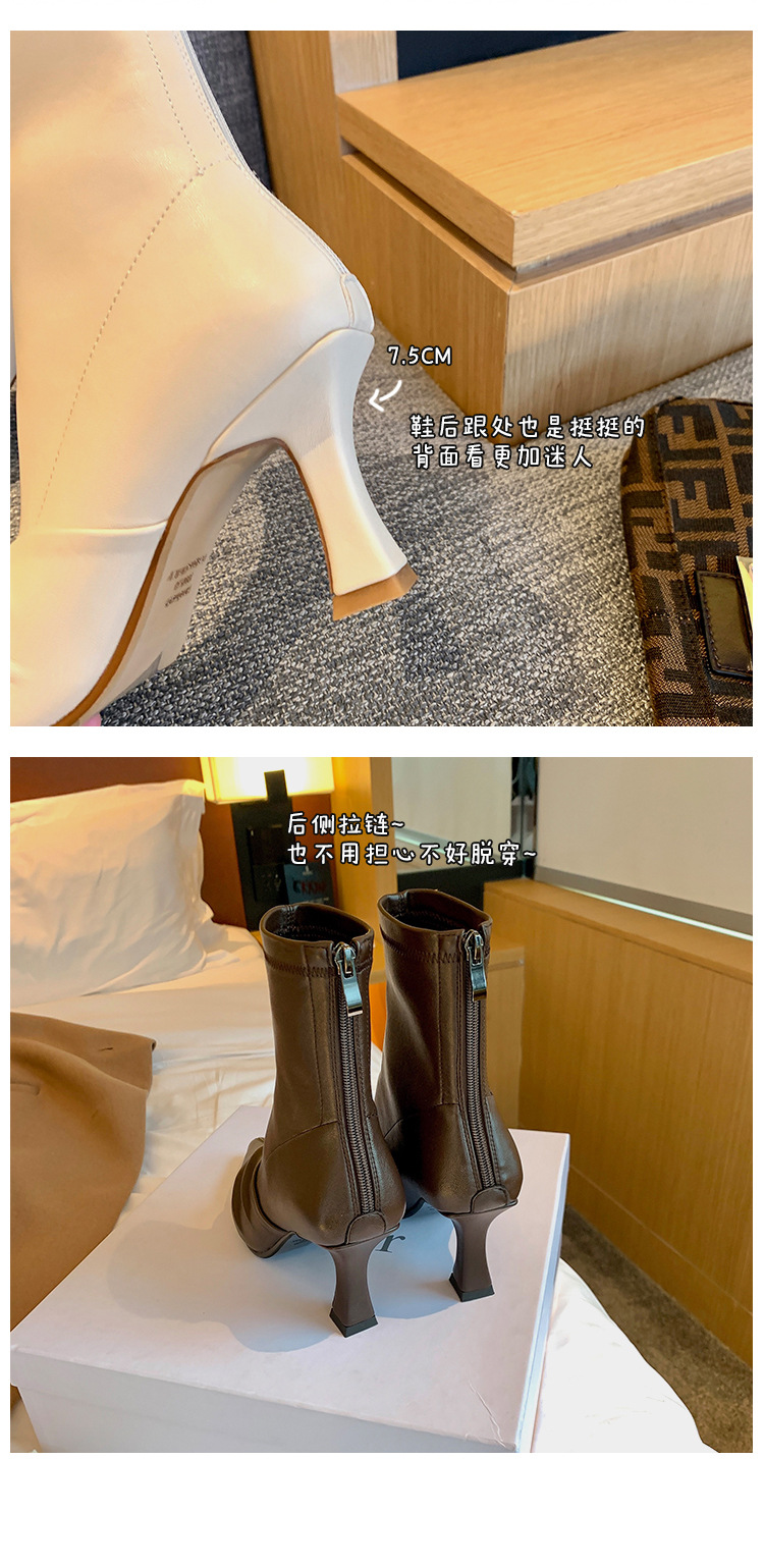 프렌치 포인트 토 숏 부츠 여성용 부드러운 가죽 미드 배럴 싱글 부츠 2023 새로운 스타일 얇은 힐 부츠 하이힐 인터넷 연예인 스트레치 씬 부츠스토어 가기
