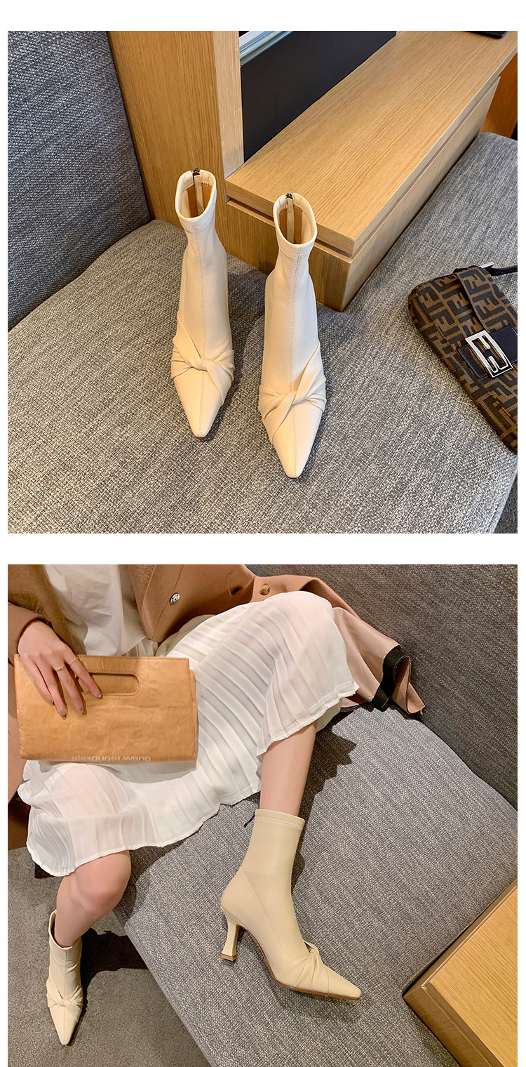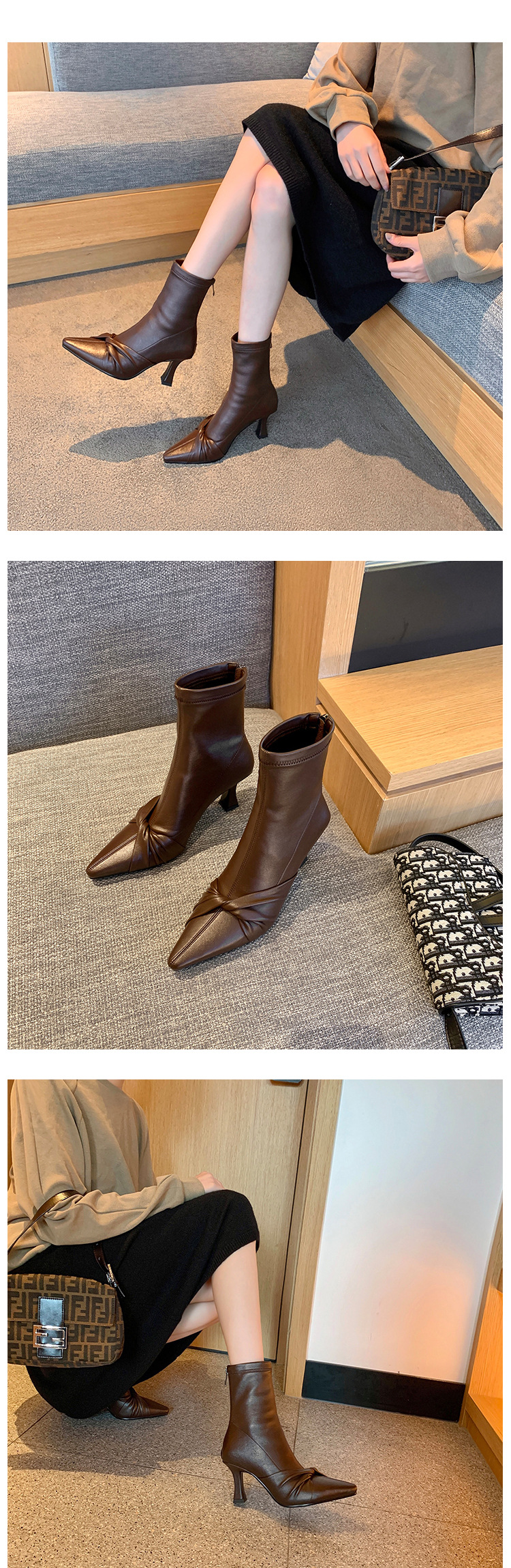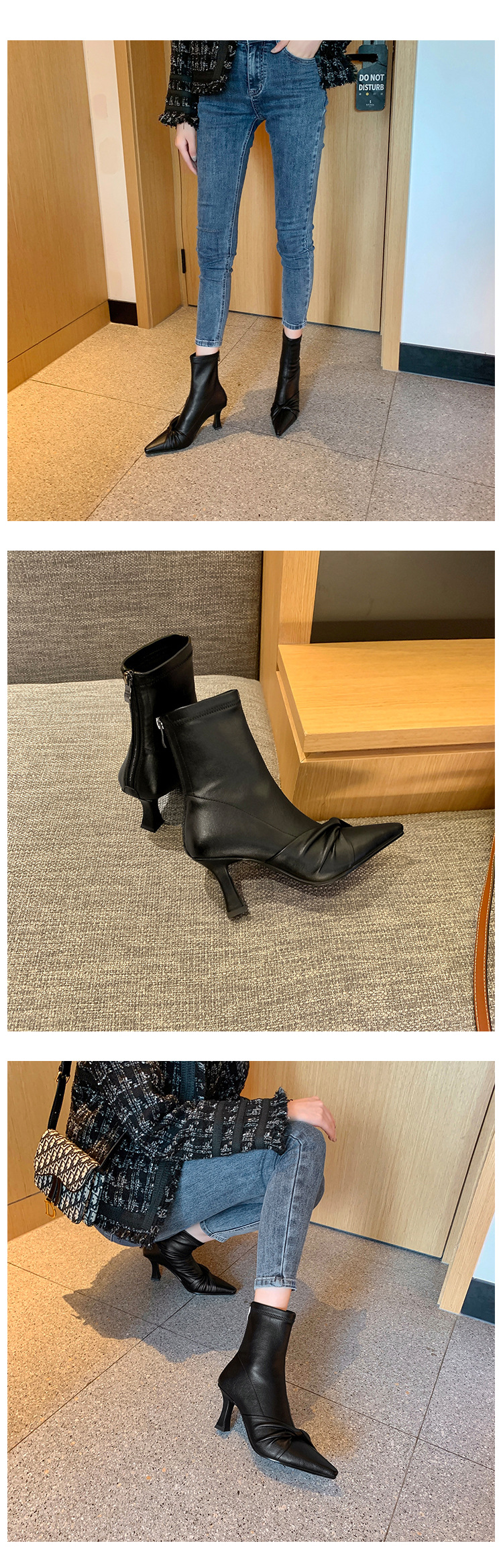 프렌치 포인트 토 숏 부츠 여성용 부드러운 가죽 미드 배럴 싱글 부츠 2023 새로운 스타일 얇은 힐 부츠 하이힐 인터넷 연예인 스트레치 씬 부츠스토어 가기
