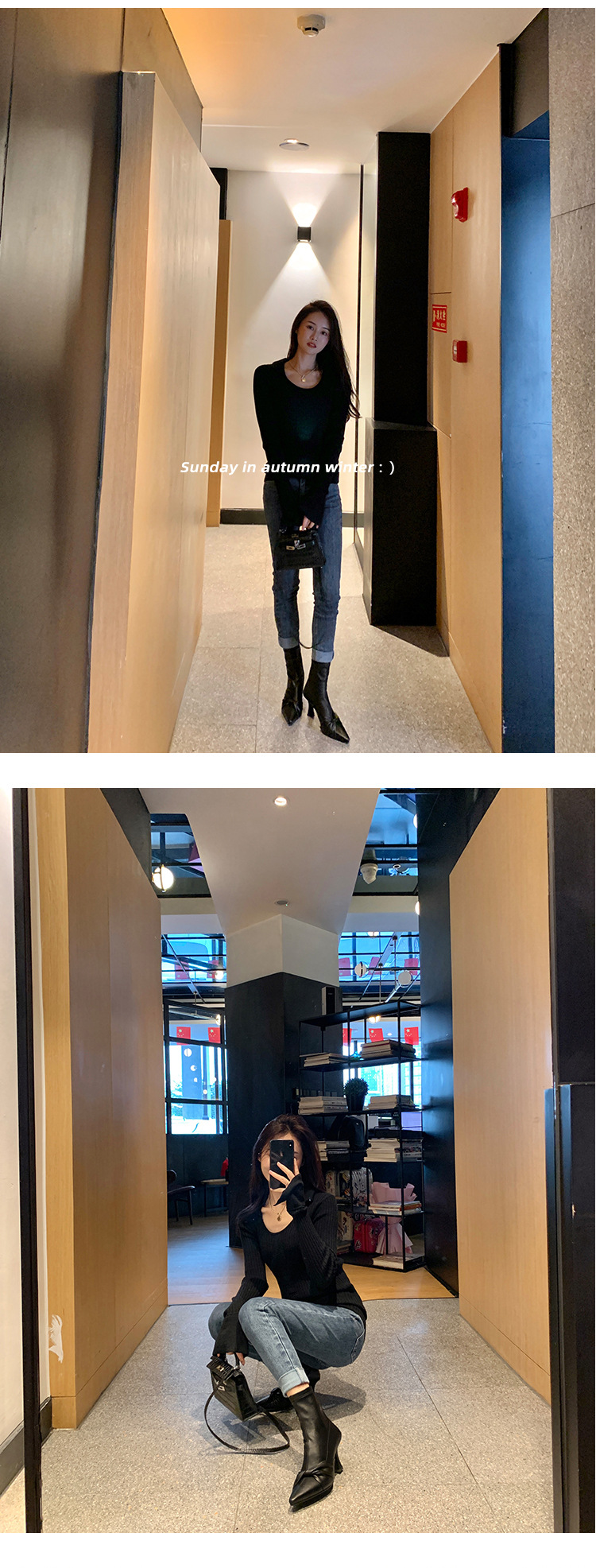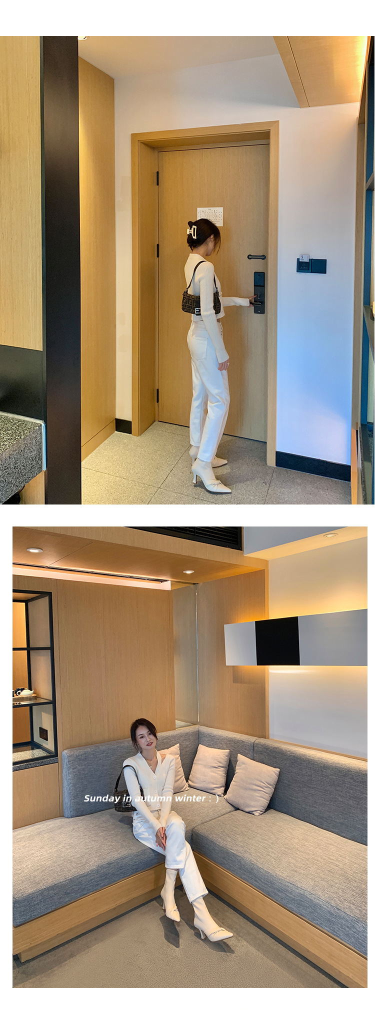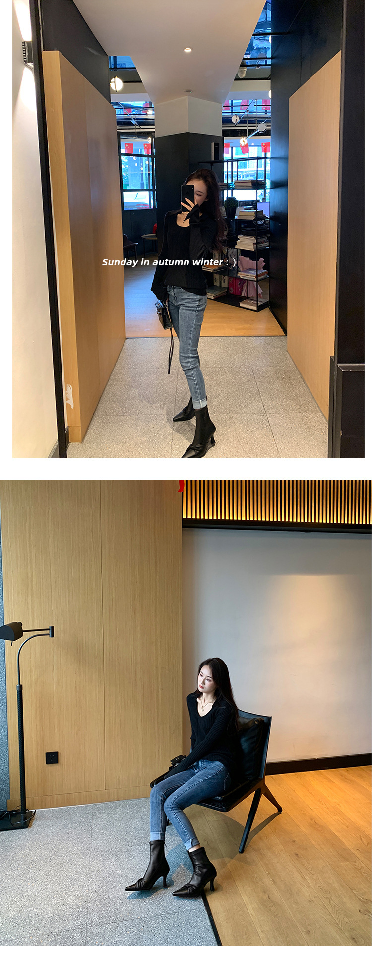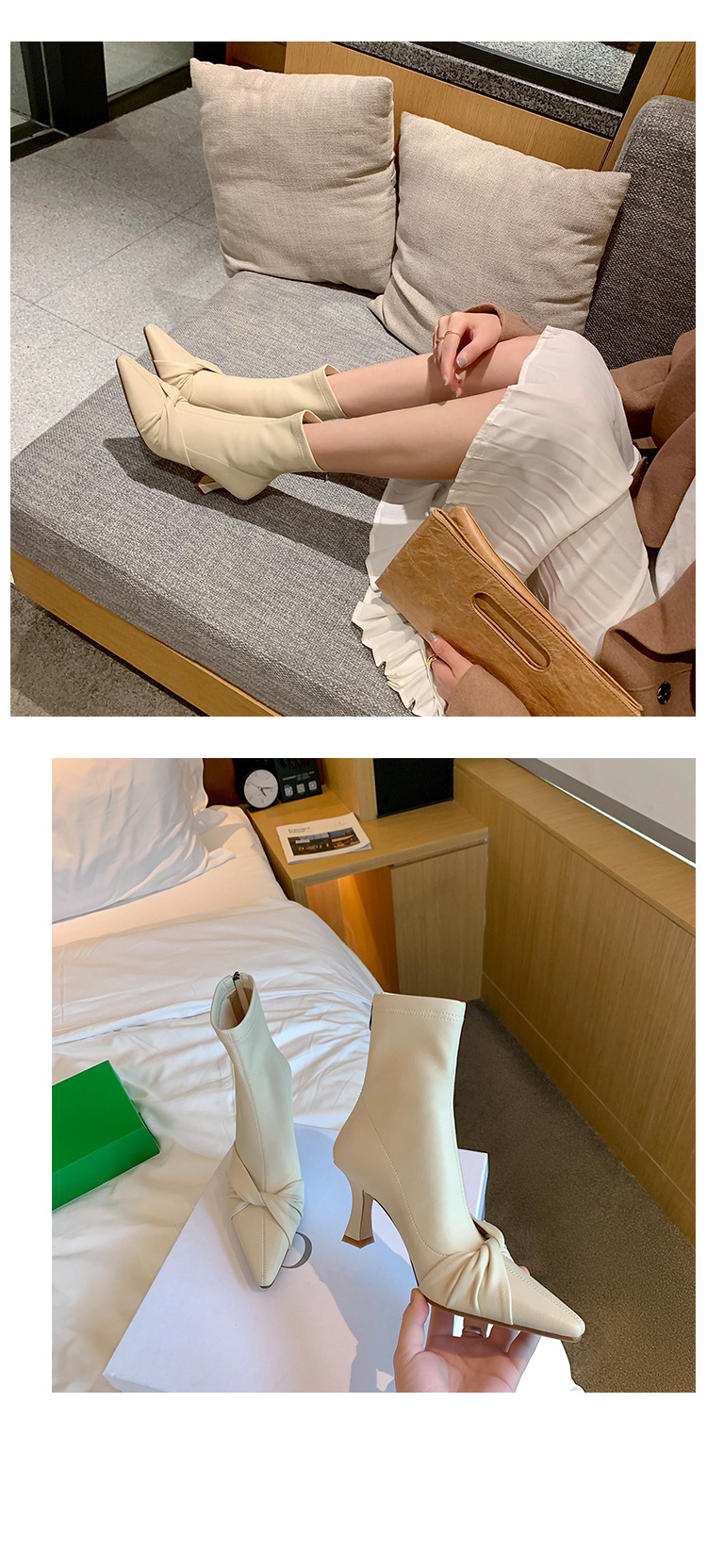 프렌치 포인트 토 숏 부츠 여성용 부드러운 가죽 미드 배럴 싱글 부츠 2023 새로운 스타일 얇은 힐 부츠 하이힐 인터넷 연예인 스트레치 씬 부츠스토어 가기