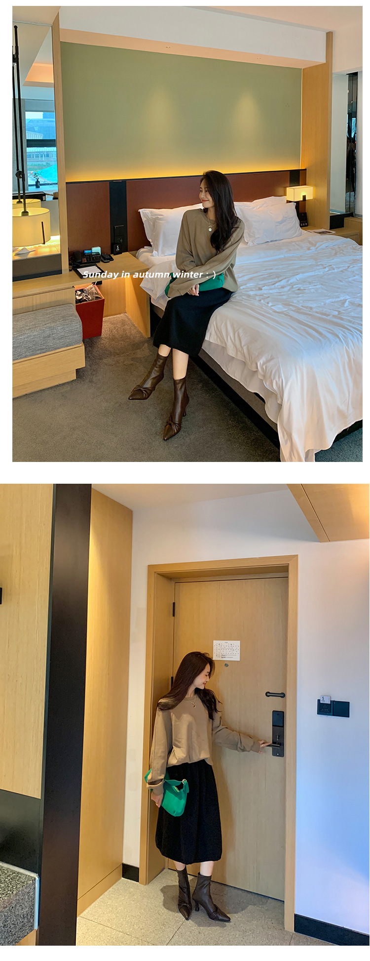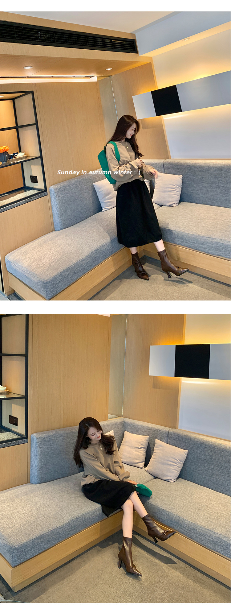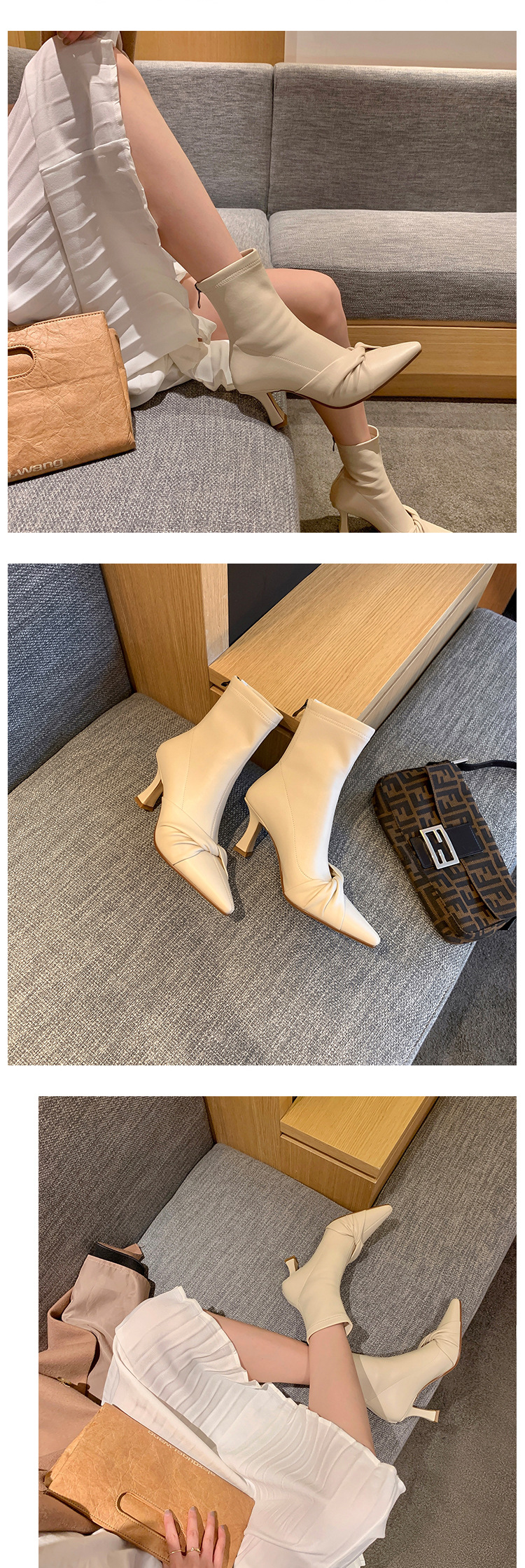 法式尖头短靴女软皮中筒单靴2021新款细跟靴子高跟网红弹力瘦瘦靴