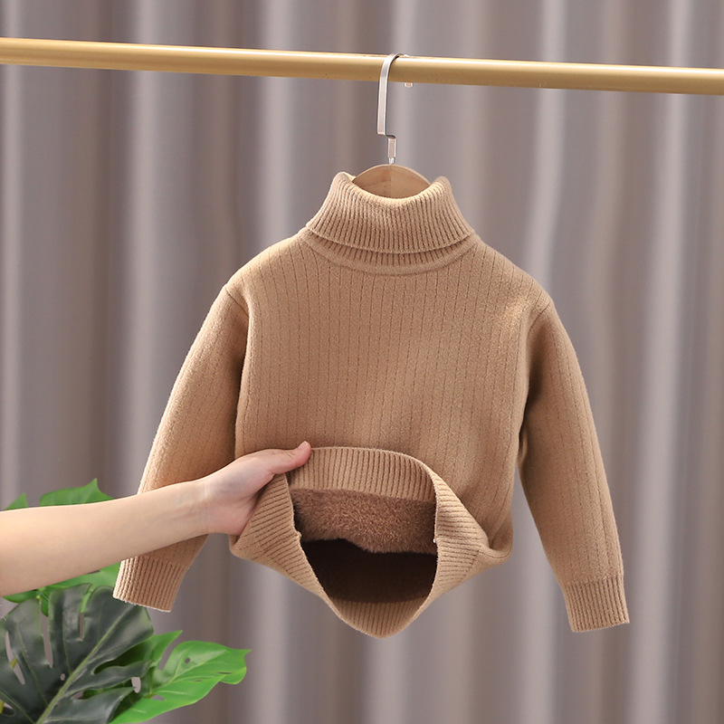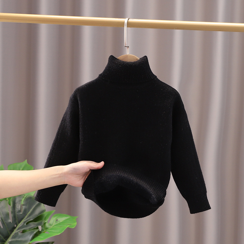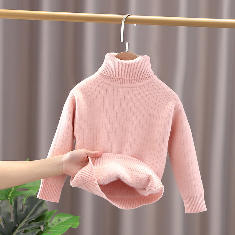 원피스 벨벳 2021 어린이 밍크 벨벳 스웨터 남성과 여성 아동복 아기 기모 기본 셔츠 하이 칼라 풀오버 따뜻한