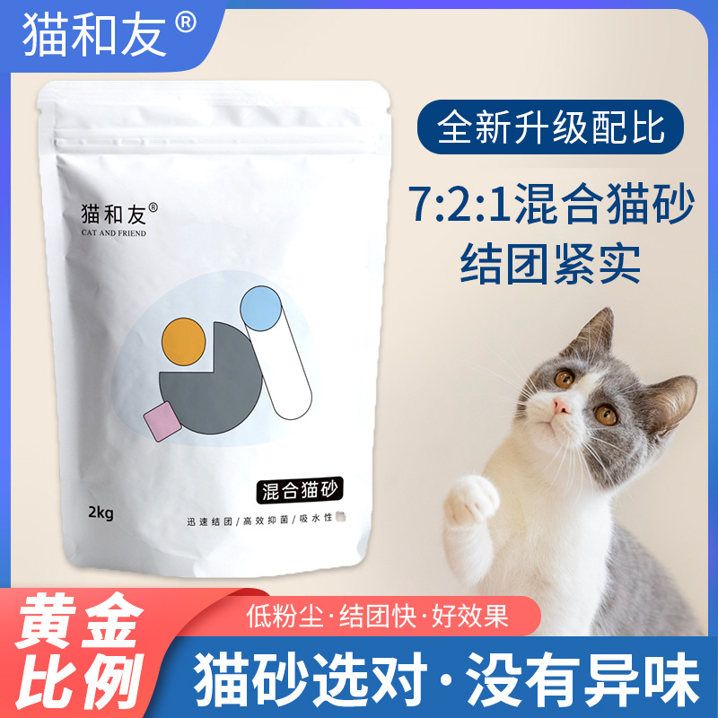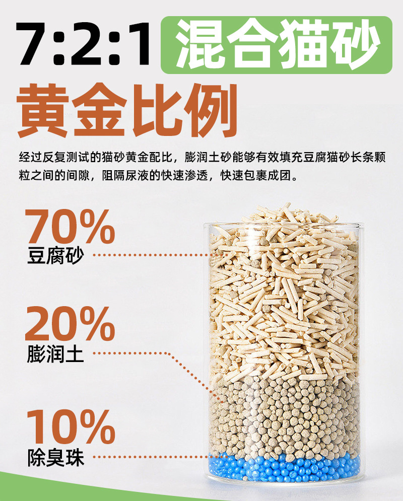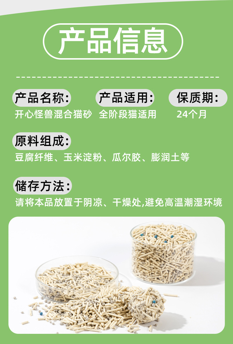 混合猫砂比例有7:3、5:5,两个配比,单包重4斤,下单前请咨询客服!