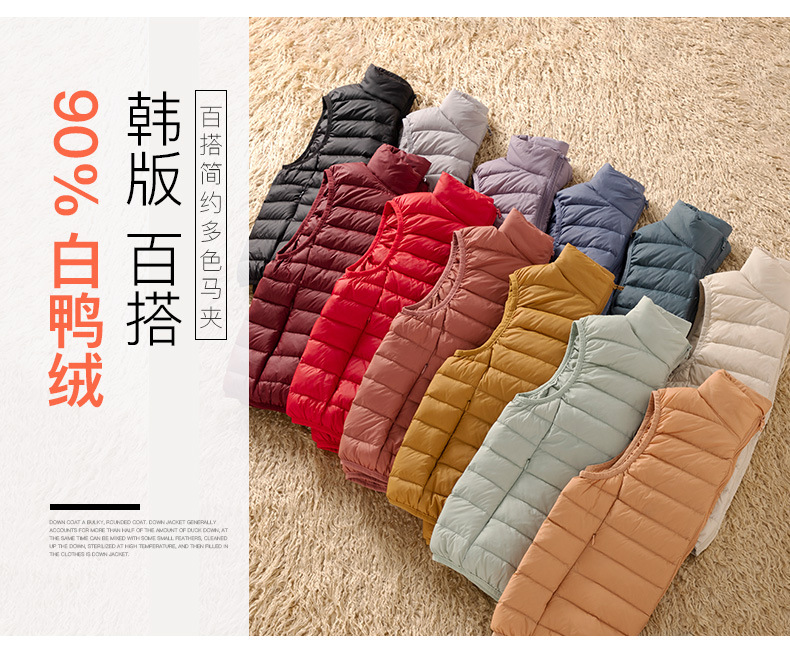 90 화이트 덕 다운 조끼 2023 새로운 여성의 경량 다운 재킷 짧은 조끼 조끼 가을 외부 탱크