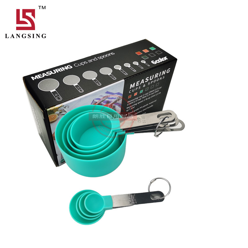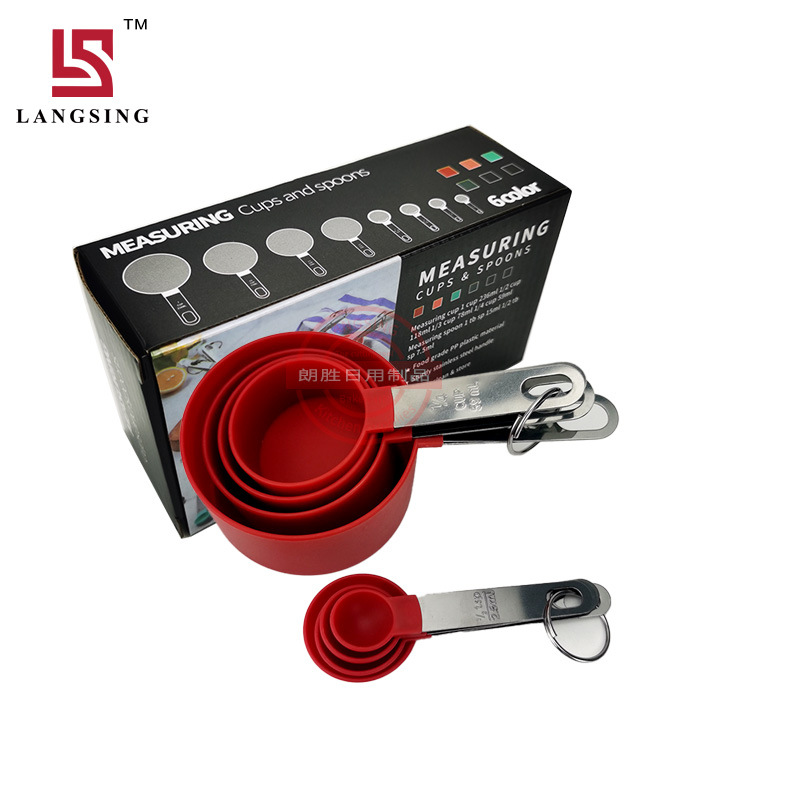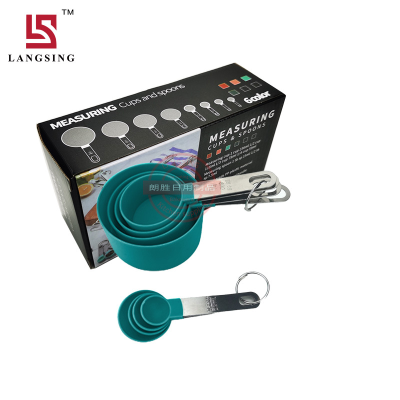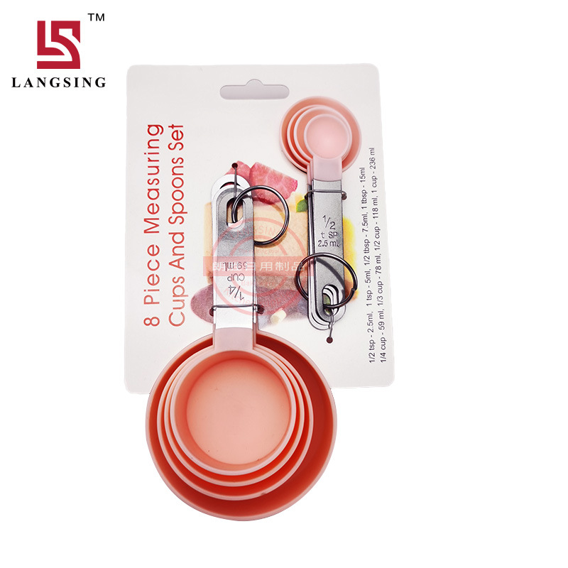 공장 재고 플라스틱 측정 컵 측정 스푼 세트 스케일 스테인레스 스틸 핸들 8 개 세트 측정 스푼 4 개 세트 측정 스푼 pp