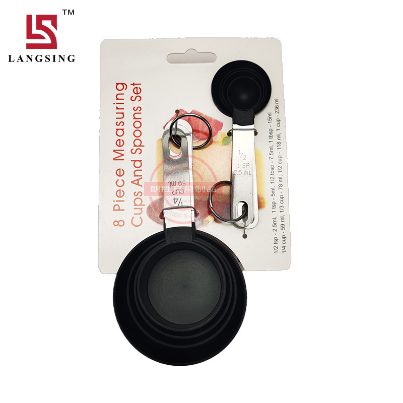 • 블랙 8 조각 측정 컵 측정 스푼 세트