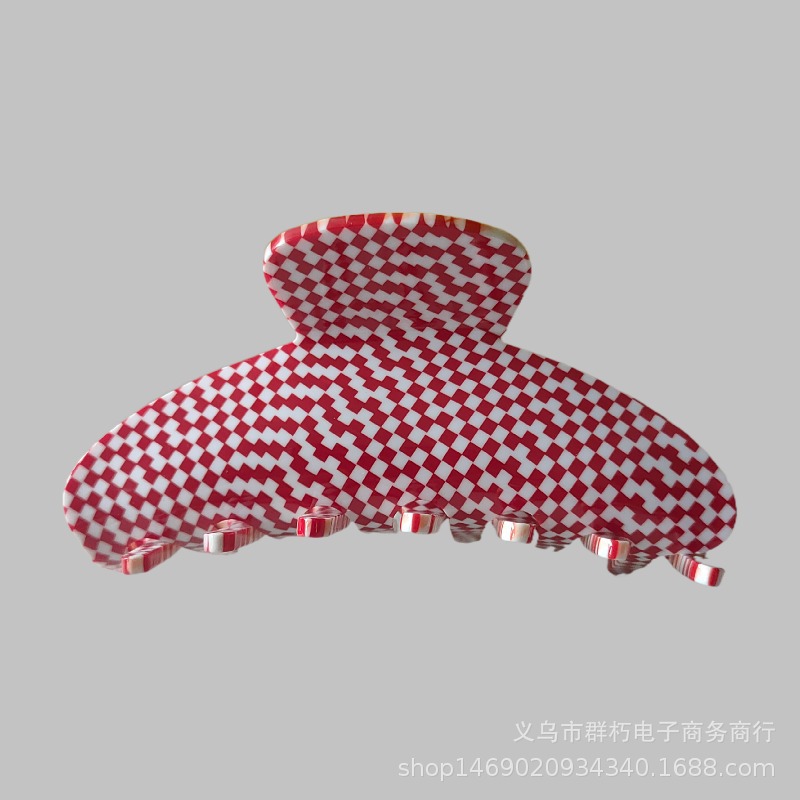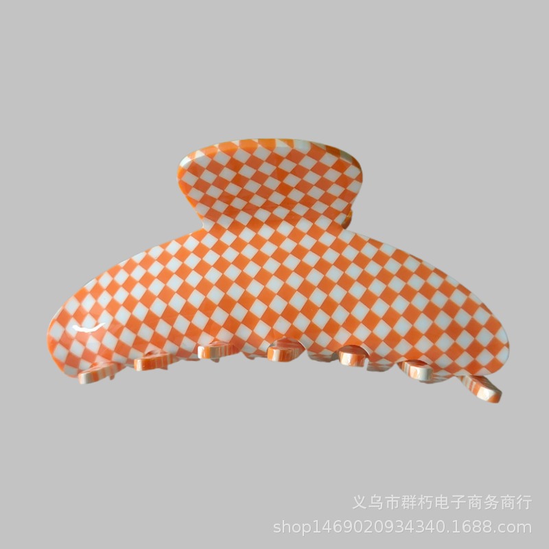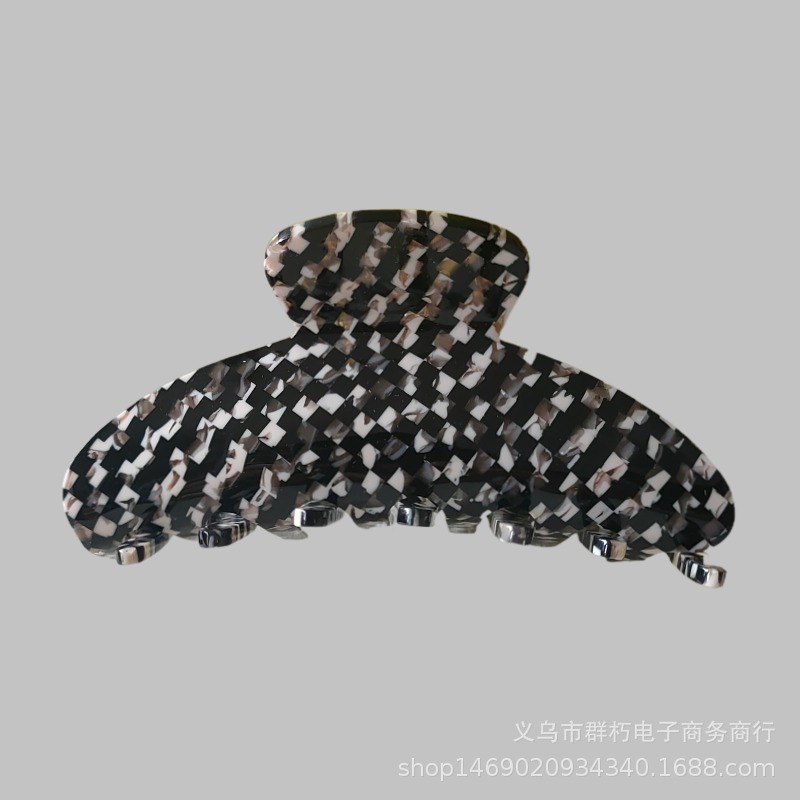 유럽과 미국 복고풍 격자 무늬 아세트산 머리 잡아 큰 머리핀 뒤 머리 잡아 클립 틈새 우아한 상어 클립 머리핀
