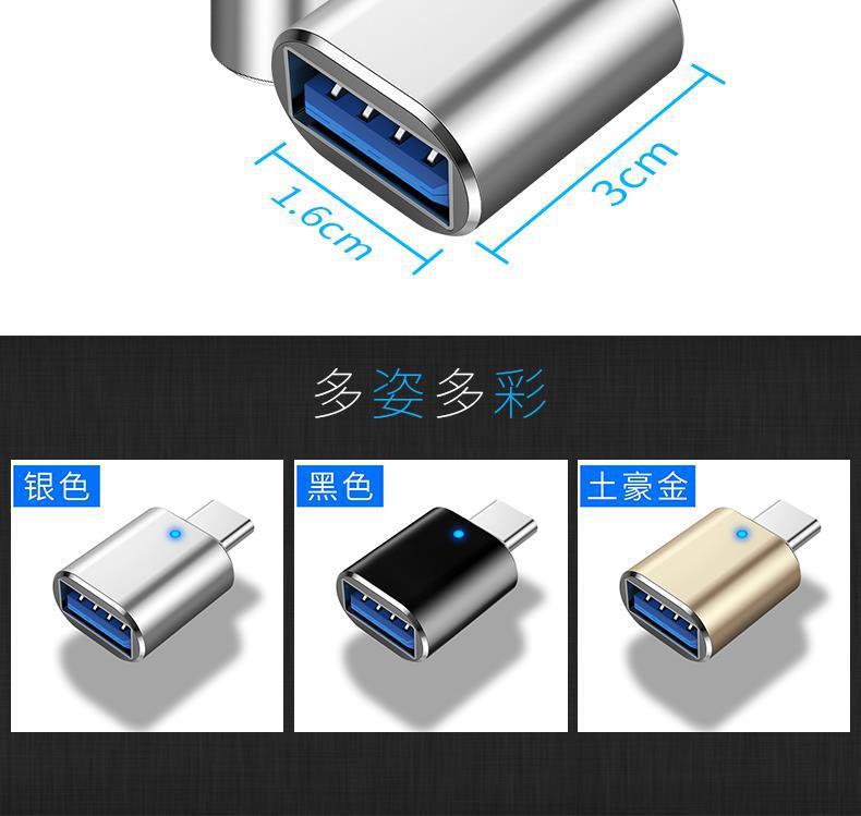 표시등이있는 U 디스크 OTG 어댑터에 연결된 유형-c to usb3.0 마우스 키보드 사운드 카드 자동차 충전스토어 가기