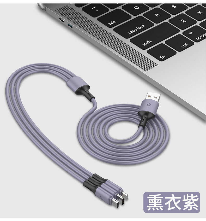 【产品优势】:一个USB拖三个接口,通用安卓手机,TYPE-C、苹果5/6/7/8/X等.....充电速度快,环保漆包线,线材柔软,不打结,耐磨耐脏!手感细腻,高档有质感,给您解决出门带多条线的烦恼