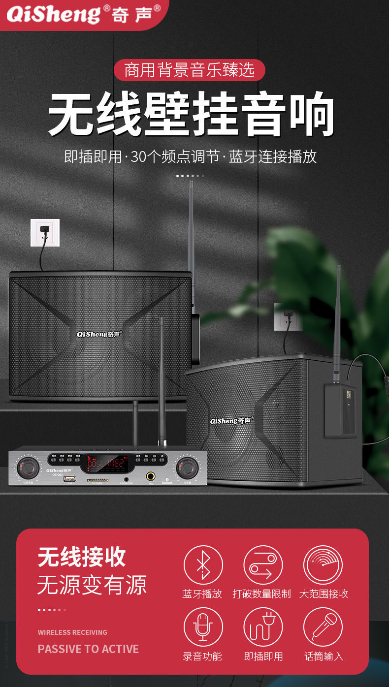 Qisheng 무선 블루투스 오디오 세트 홈 KTV 스피커 상업 회의실 서브 우퍼 벽걸이 스피커 노래방스토어 가기
