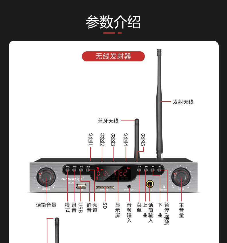 Qisheng 무선 블루투스 오디오 세트 홈 KTV 스피커 상업 회의실 서브 우퍼 벽걸이 스피커 노래방