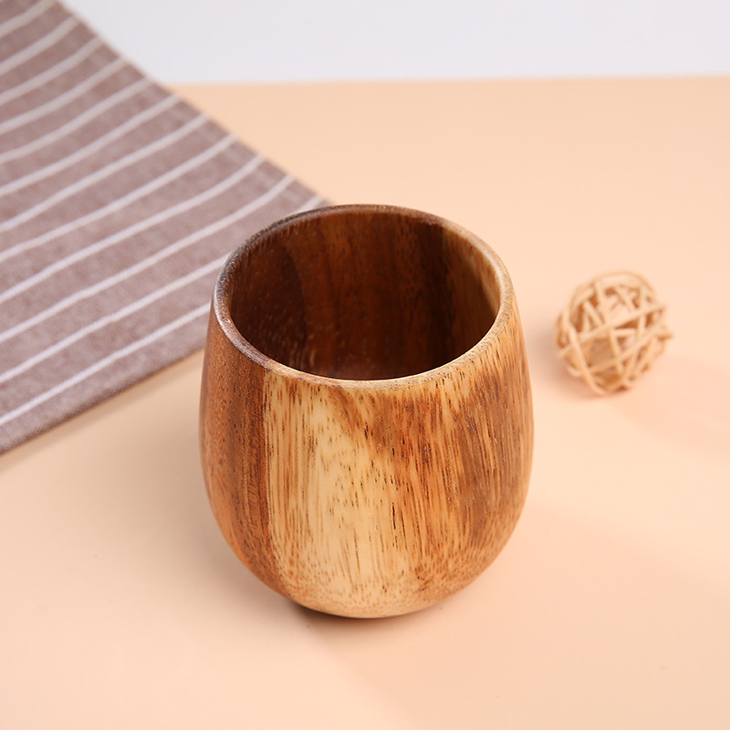 일본 찻잔 크리 에이 티브 홈 레트로 큰 배꼽 컵 나무 컵 레스토랑 나무 아카시아 나무 찻잔 조각
