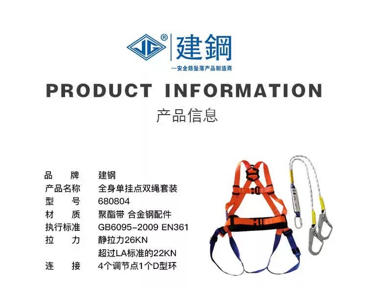 Jian Gang 680804 전신 단일 고정점 안전 벨트 단일 로프 단일 후크 버퍼 가방 고공 작업 낙하 방지