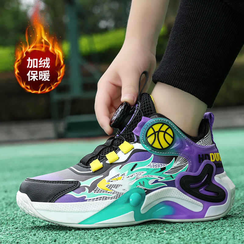 공장 직접 가죽 소년 농구화 중간 방수 미끄럼 방지 어린이 운동화 어린이 따뜻한 캐주얼 신발