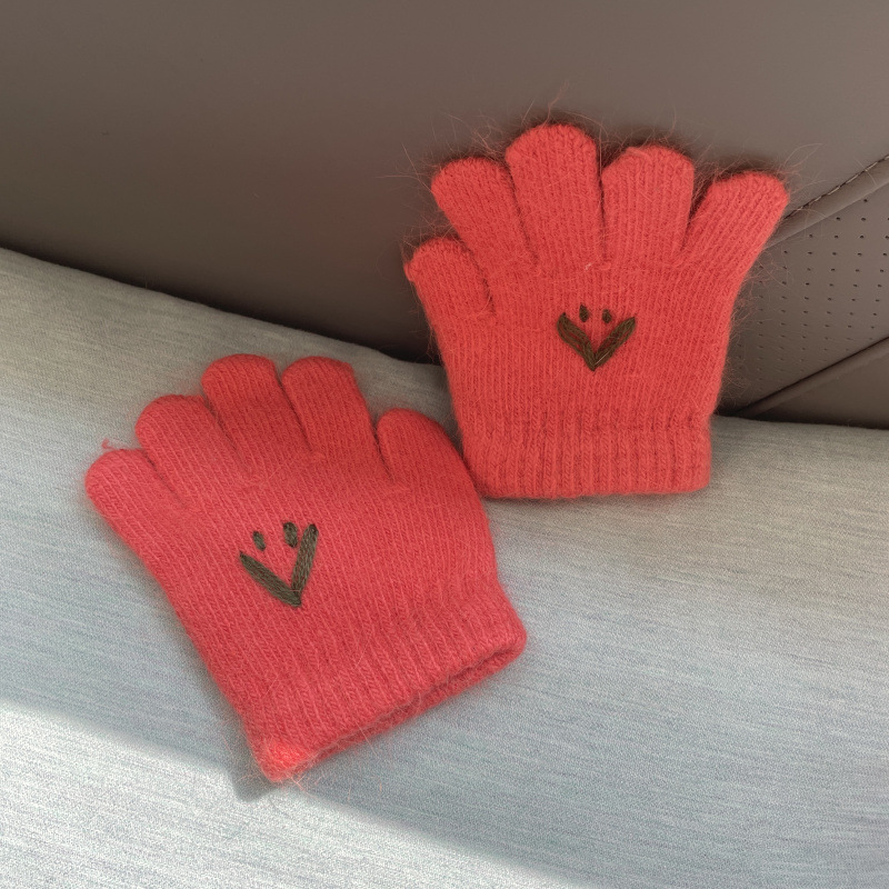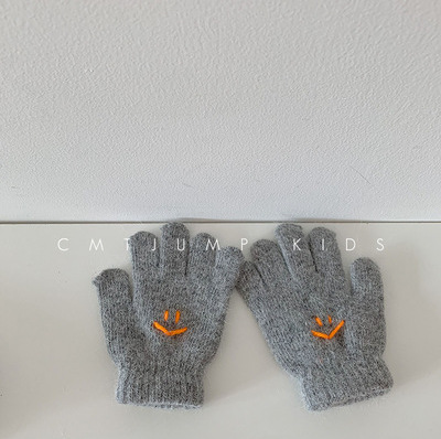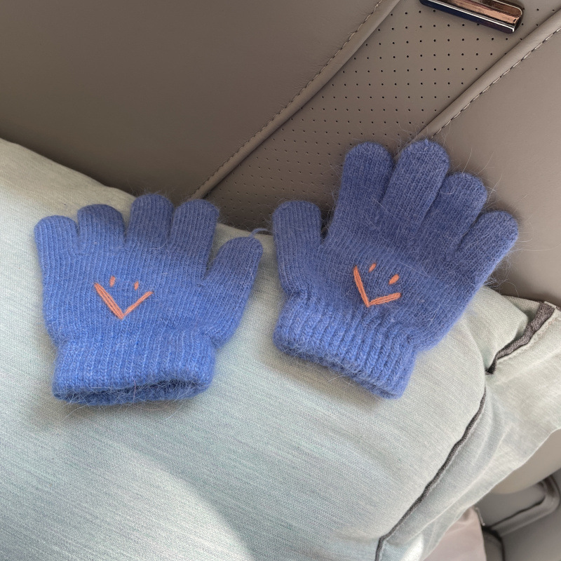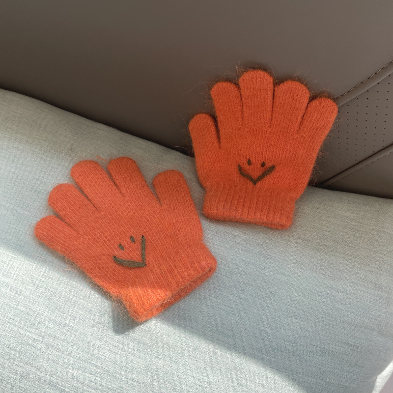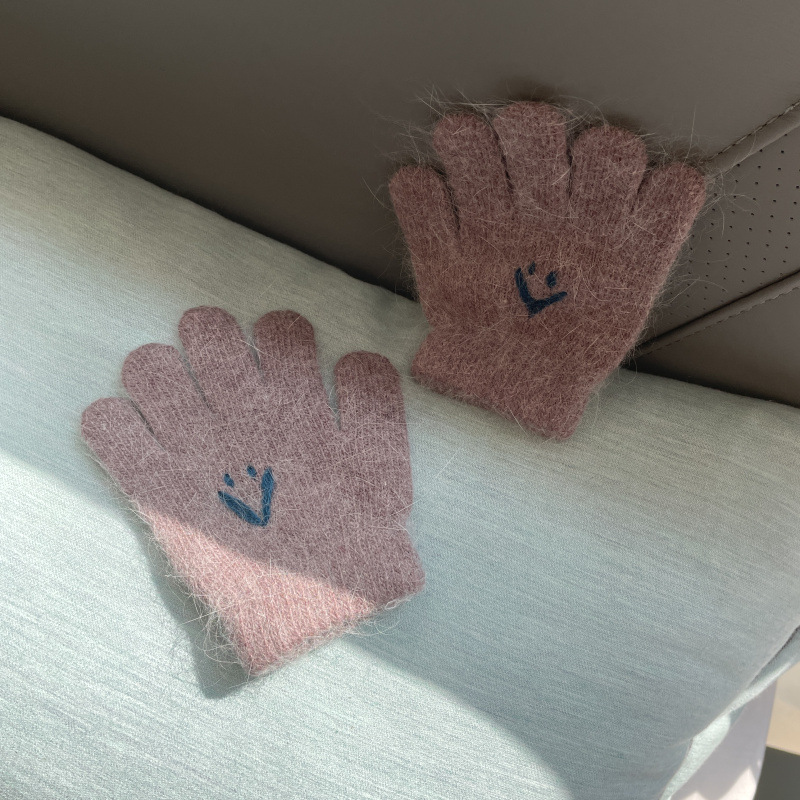 한국 어린이 장갑 겨울 따뜻한 소년과 소녀의 웃는 토끼 머리 장갑 초등학생을위한 아기의 양모 다섯 손가락 장갑스토어 가기