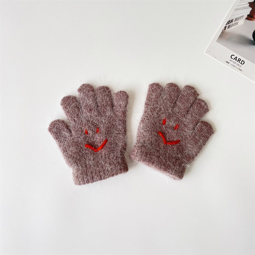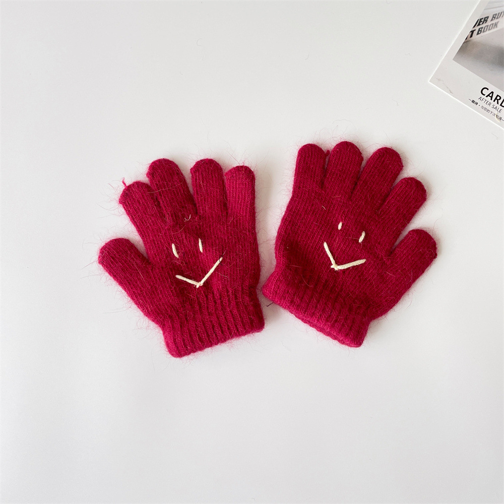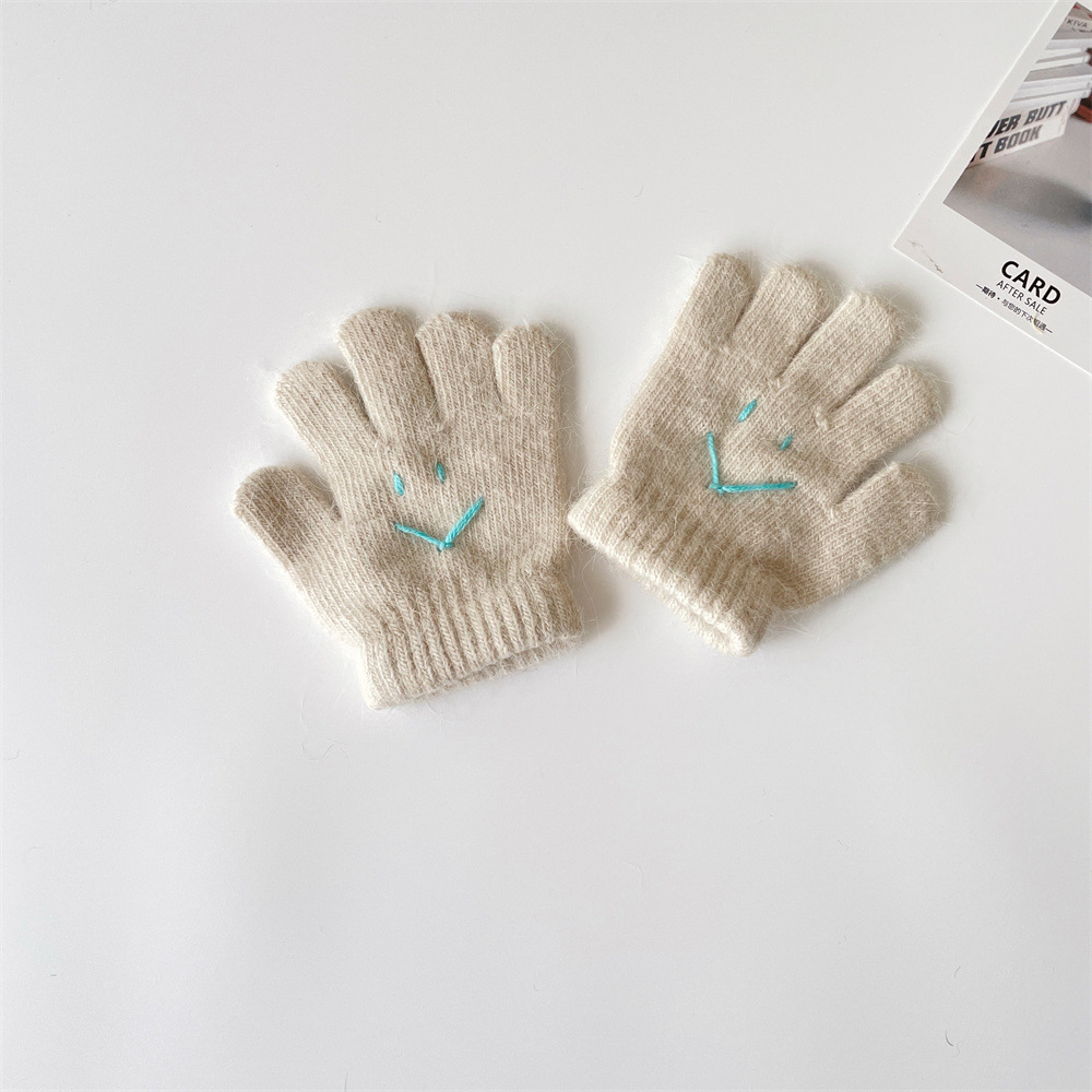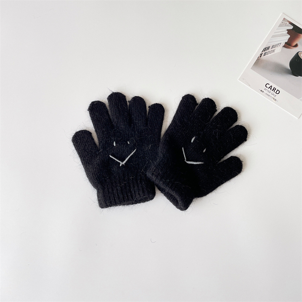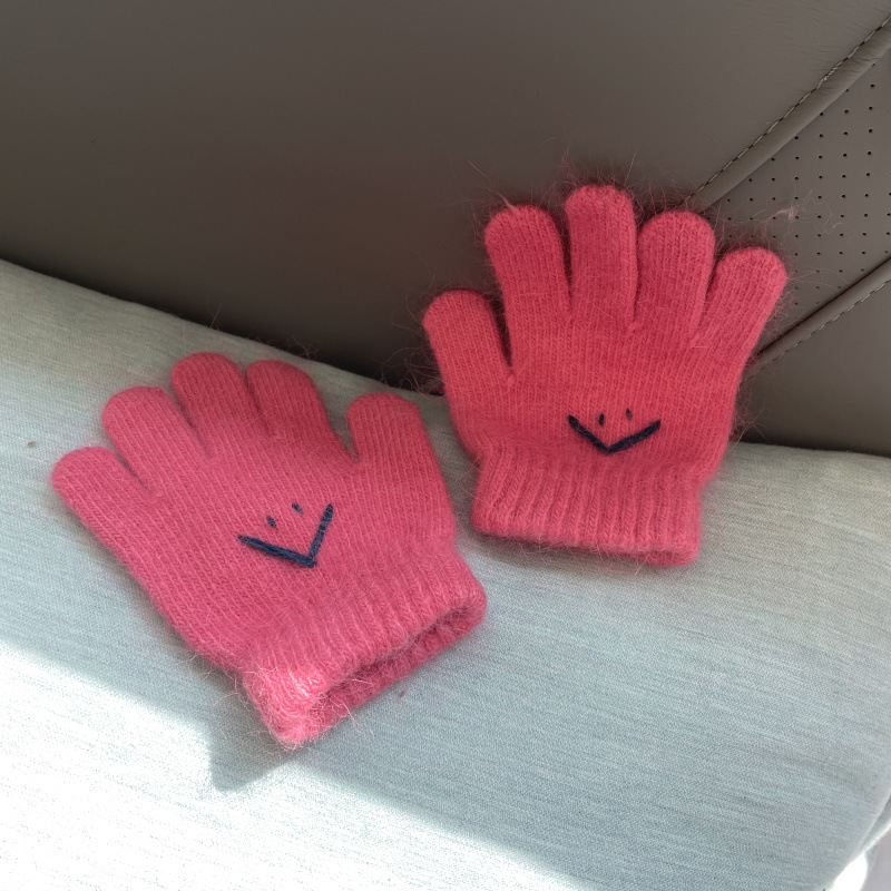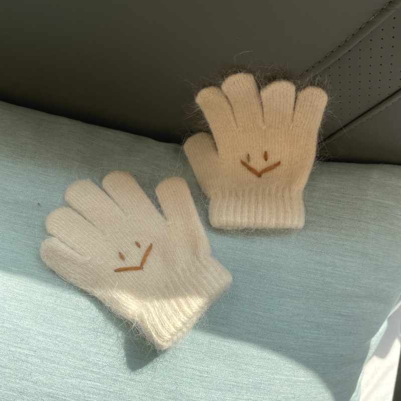 한국 어린이 장갑 겨울 따뜻한 소년과 소녀의 웃는 토끼 머리 장갑 초등학생을위한 아기의 양모 다섯 손가락 장갑