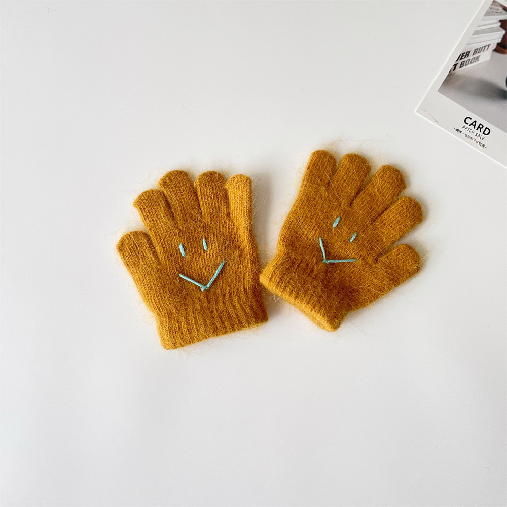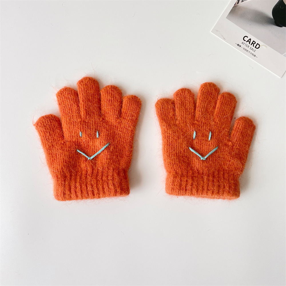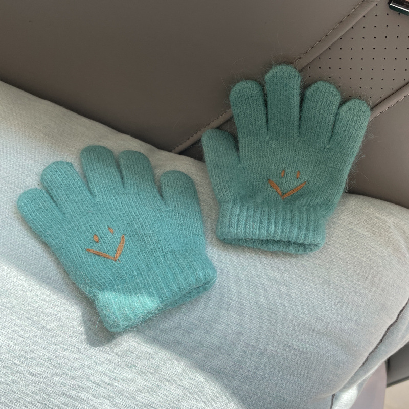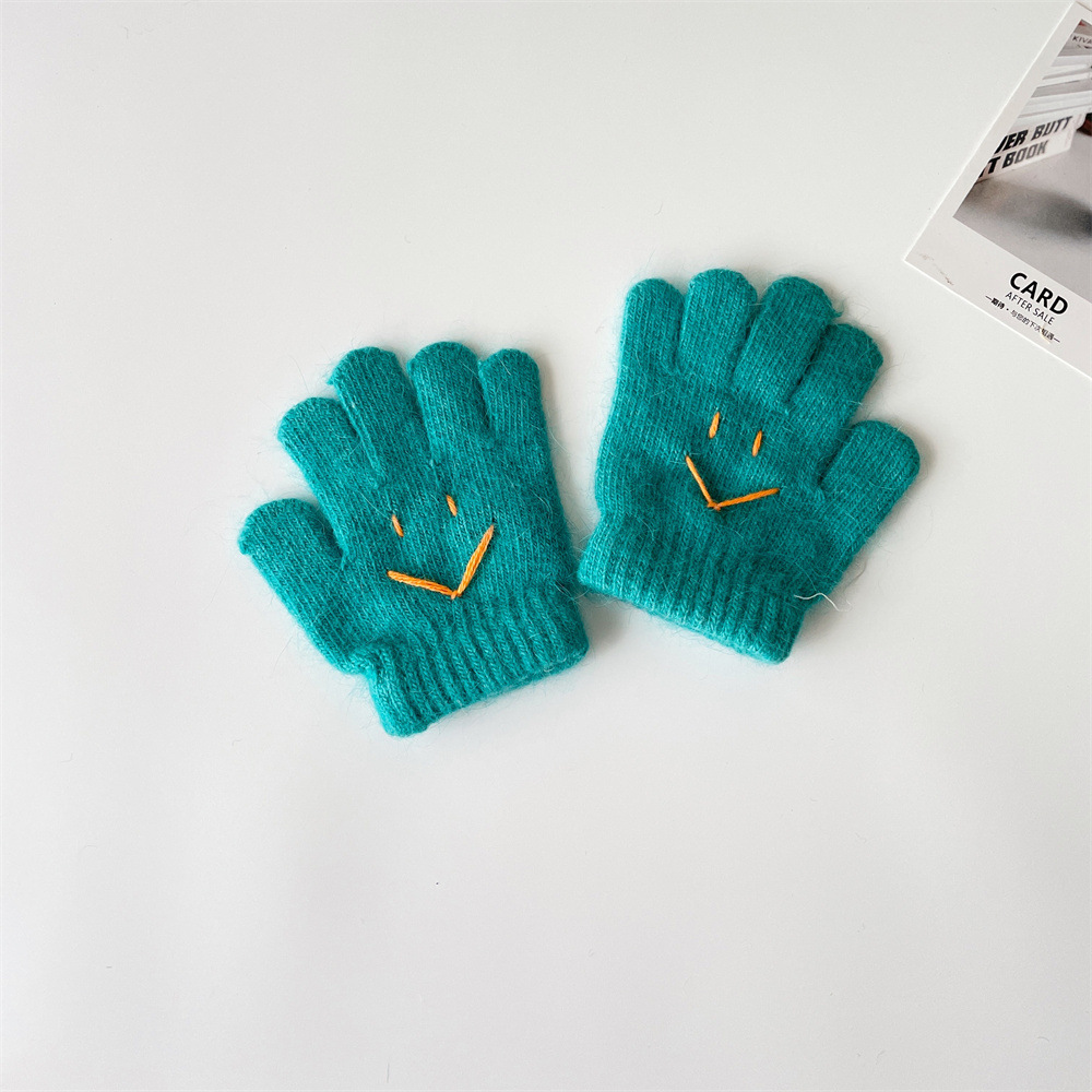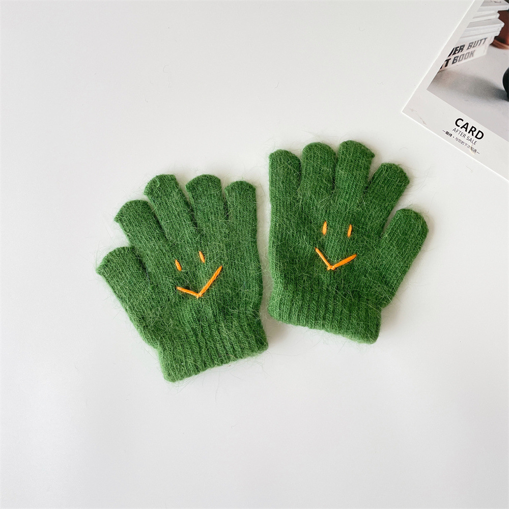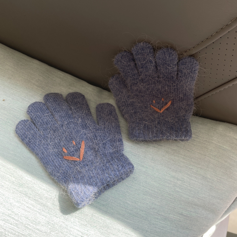 한국 어린이 장갑 겨울 따뜻한 소년과 소녀의 웃는 토끼 머리 장갑 초등학생을위한 아기의 양모 다섯 손가락 장갑