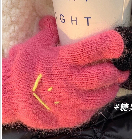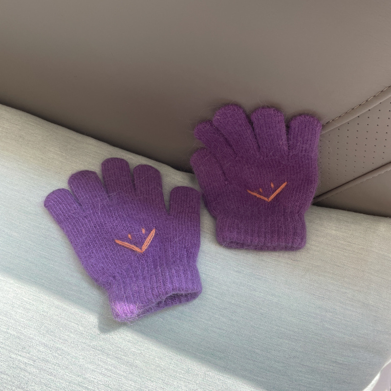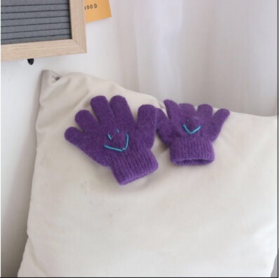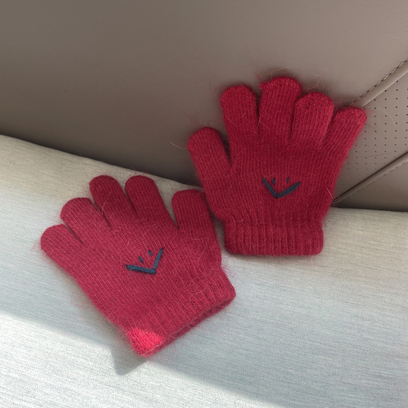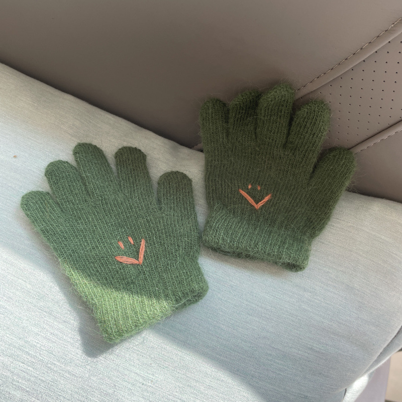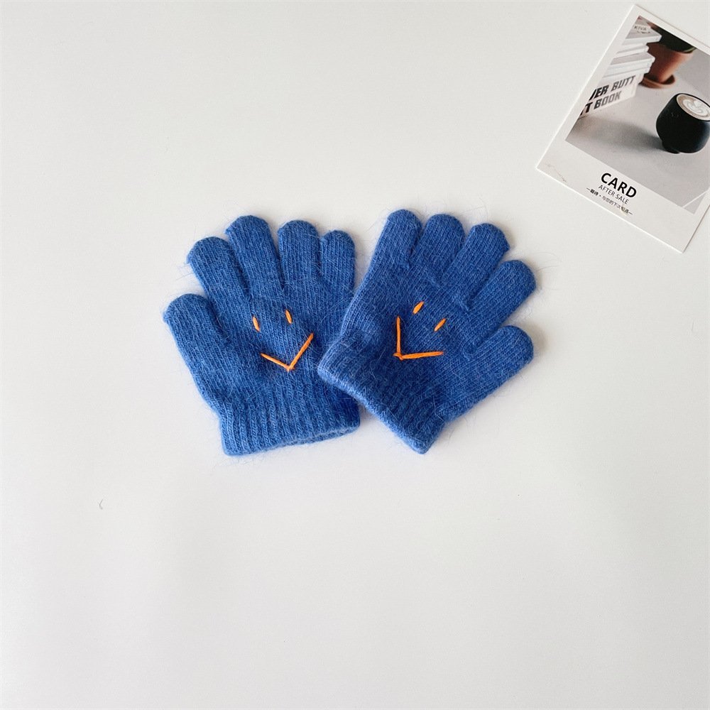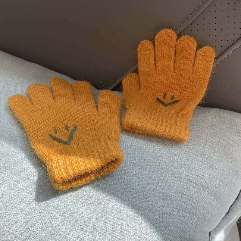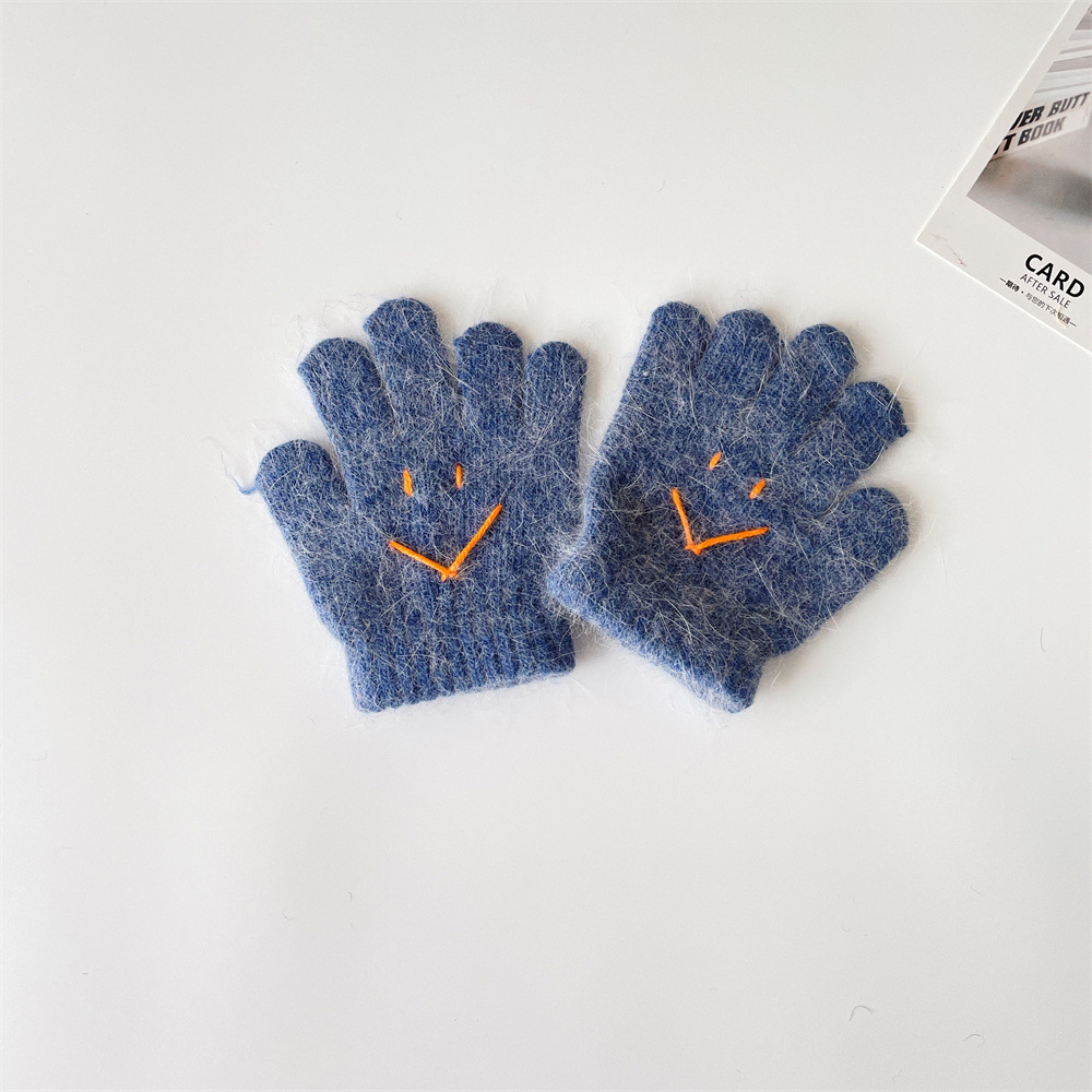 한국 어린이 장갑 겨울 따뜻한 소년과 소녀의 웃는 토끼 머리 장갑 초등학생을위한 아기의 양모 다섯 손가락 장갑