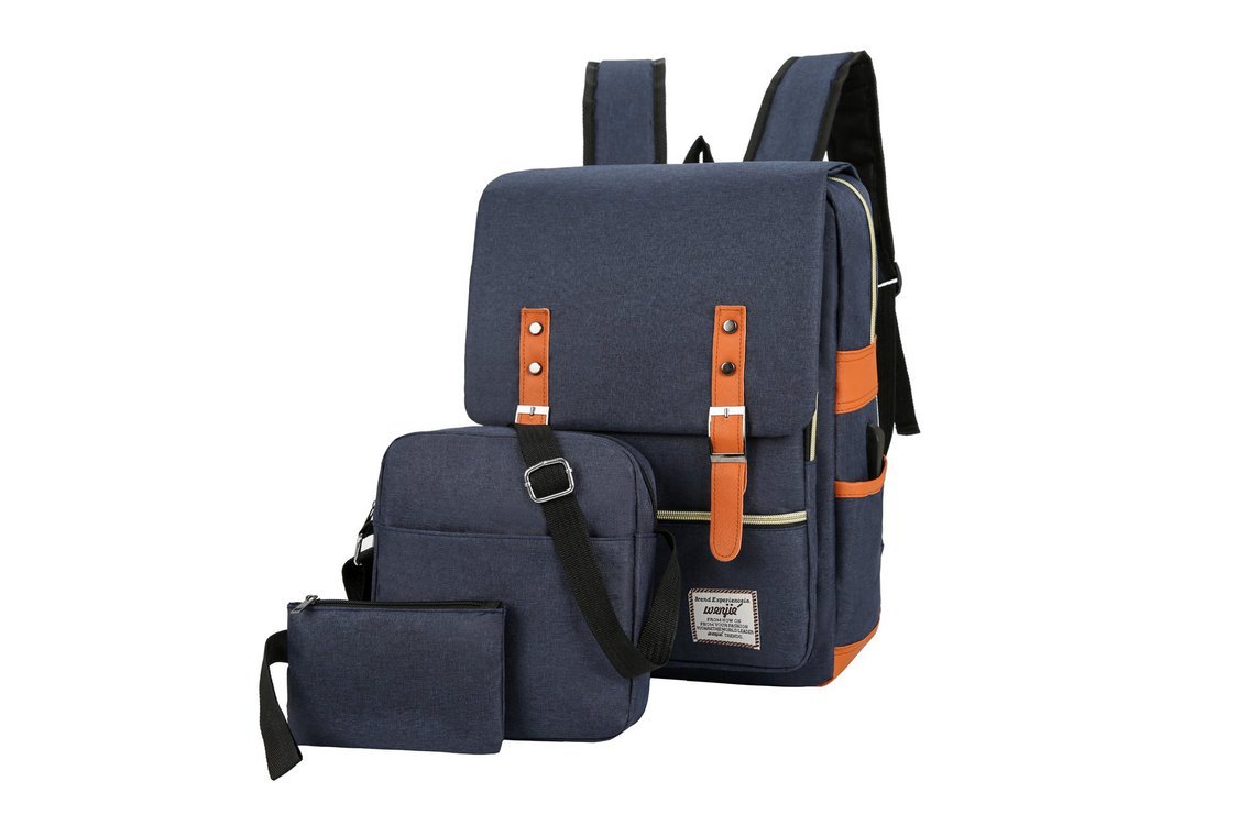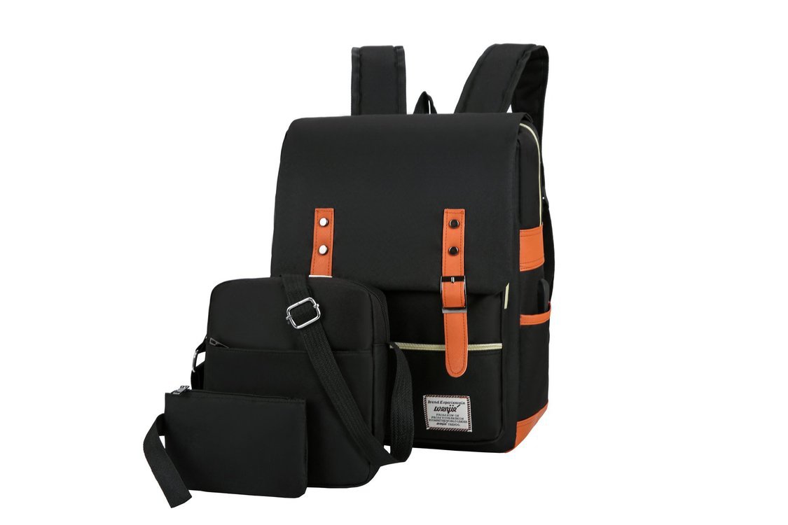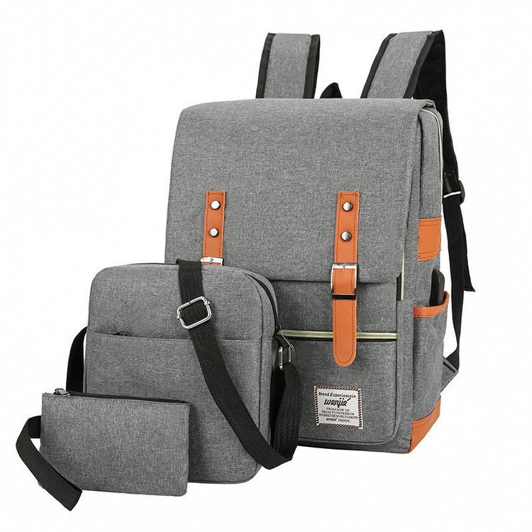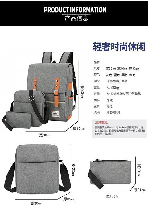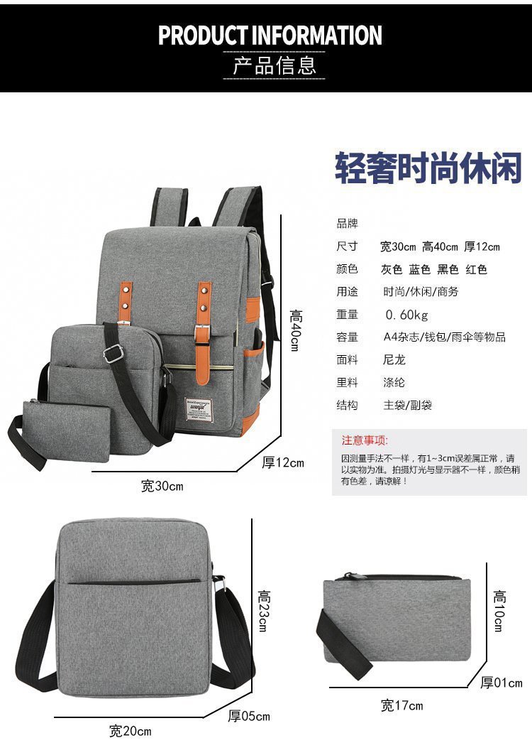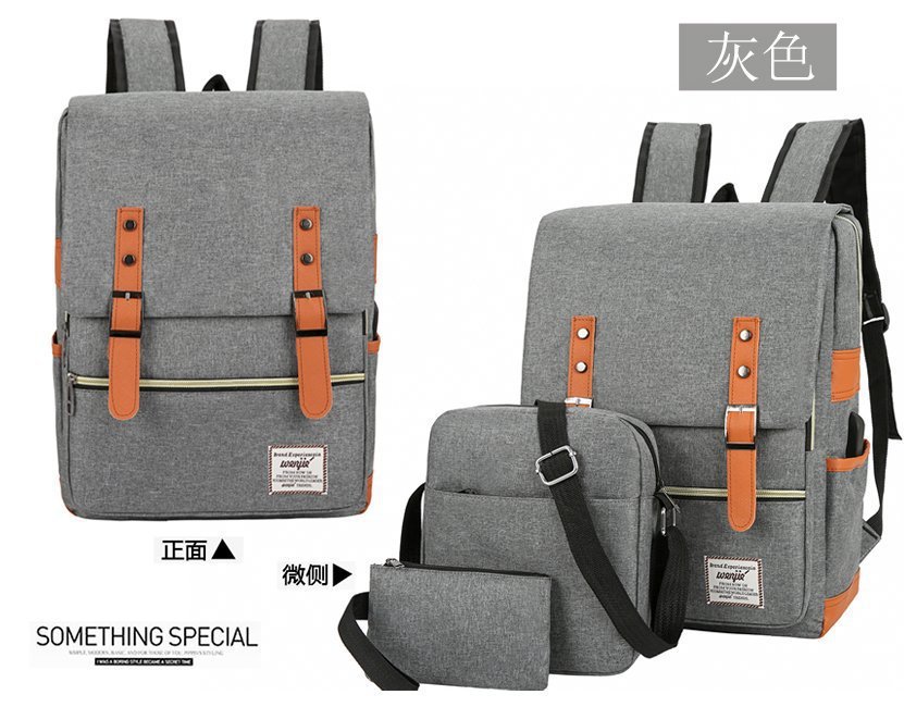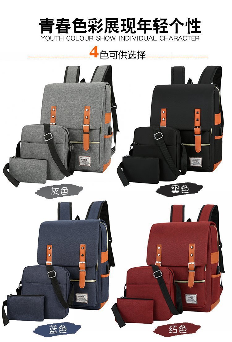 크로스 보더 백팩 선물 3 종 세트 한국식 학생 배낭 usb 컴퓨터 가방 남성 캐주얼 숄더백
