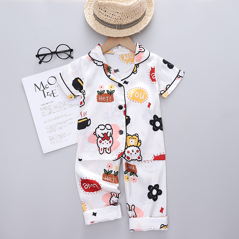 어린이 아이스 실크 잠옷 여자 봄과 가을 작은 소년의 실크 가정 옷 한국식 얇은 에어컨 옷 세트스토어 가기