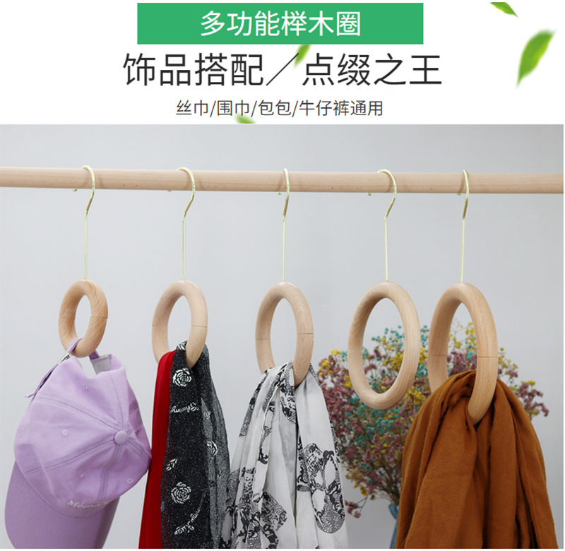 하이 퀄리티 너도밤 나무 나무 단단한 나무 스카프 반지 s 후크 교수형 에디션 의류 바지 랙 클립 스카프 실크 수건 랙 나무 반지 후크 반지