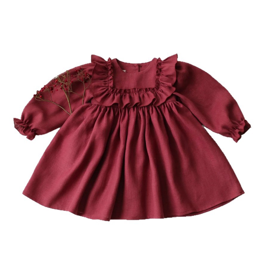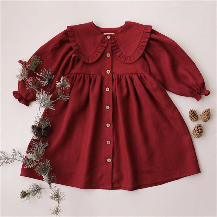 여아 원피스, 라펠 긴팔 프릴 공주 드레스, 앞단추 스커트, 가을 겨울, 인스 스타일, 수출용