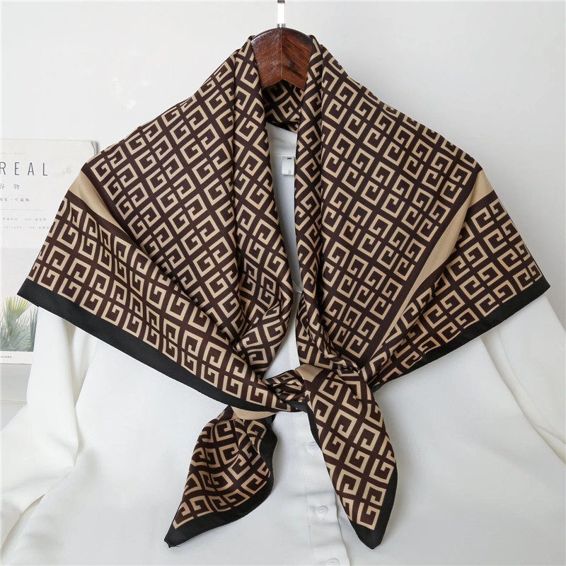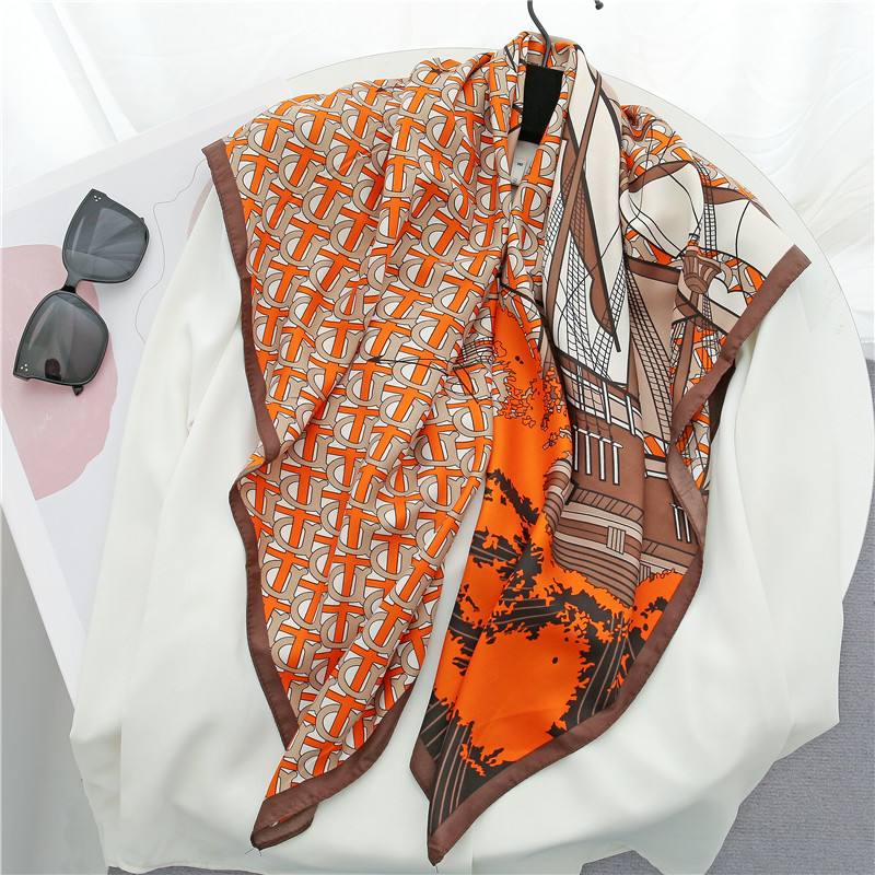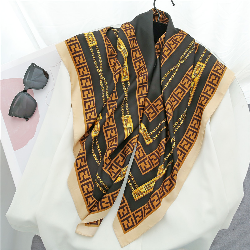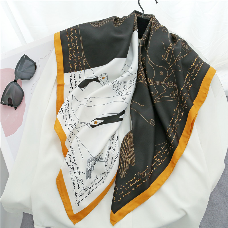 봄과 가을 새로운 90cm 능직 실크 대형 스퀘어 스카프 여성의 모조 실크 숄 유럽과 미국 스카프 인쇄 장식 스카프 도매