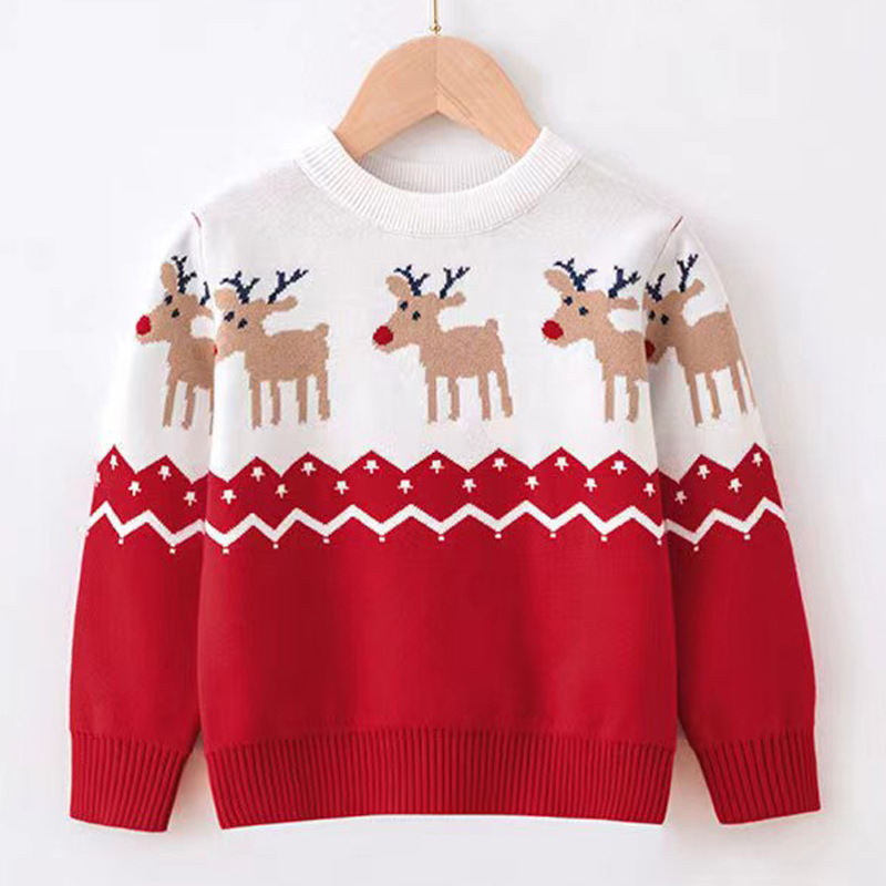 아동용 스웨터 스웨터 2025 새로운 가을, 겨울 소년의 두꺼운 크리스마스 엘크 바닥 셔츠 소녀의 국경 간 아동 의류