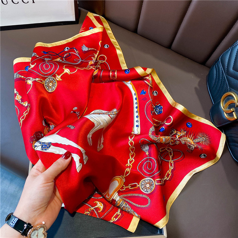 두 마리의 말이 얽혀 있습니다! 뽕나무 실크 스카프 여성용 한국식 봄과 가을 올 매치 70cm 스퀘어 실크 장식 스카프