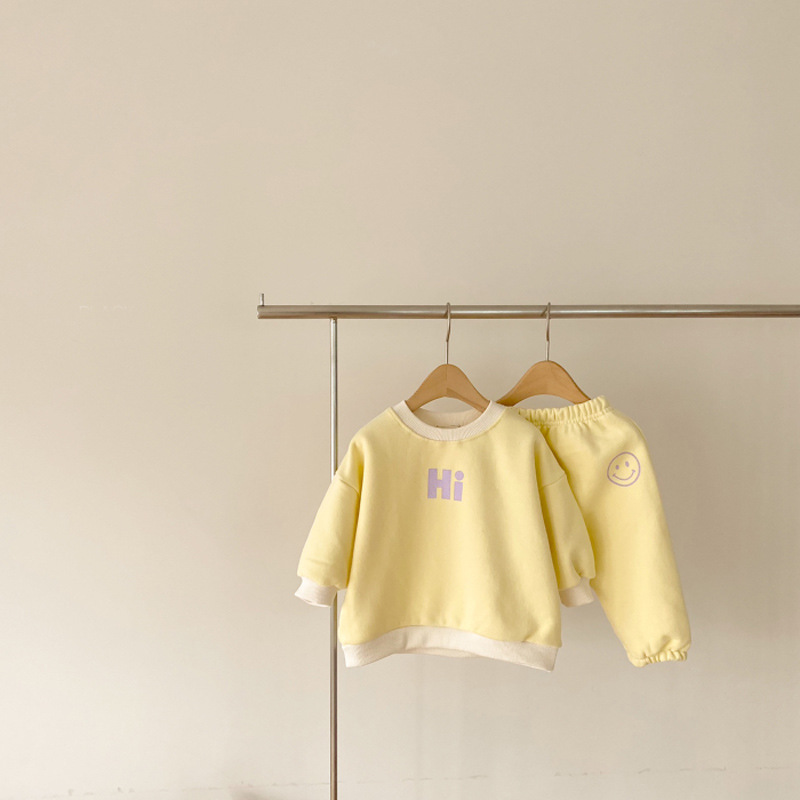 한국식 중형 및 소형 아동용 외국식 세트 아기의 봄과 가을 캐주얼 스웨터 만화 편지 웃는 얼굴 2 종 세트스토어 가기