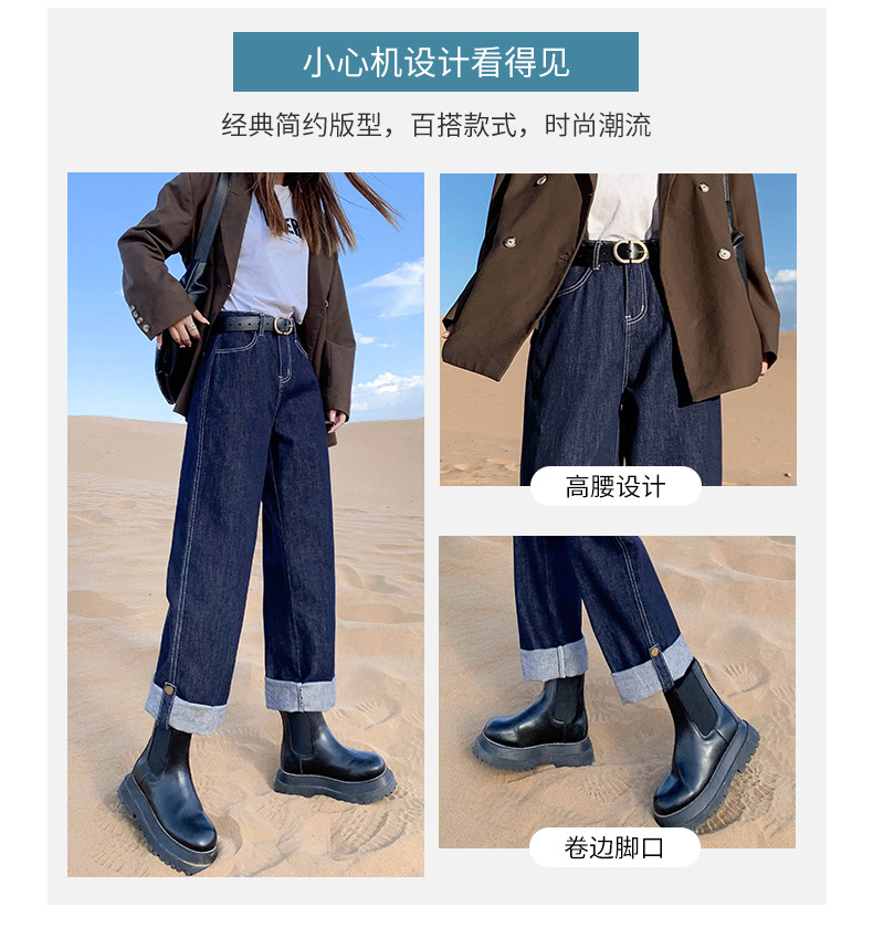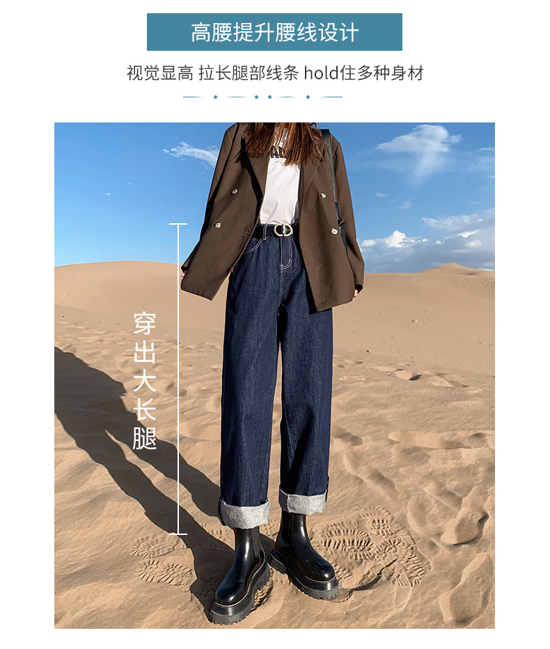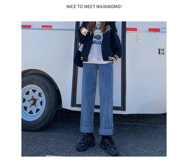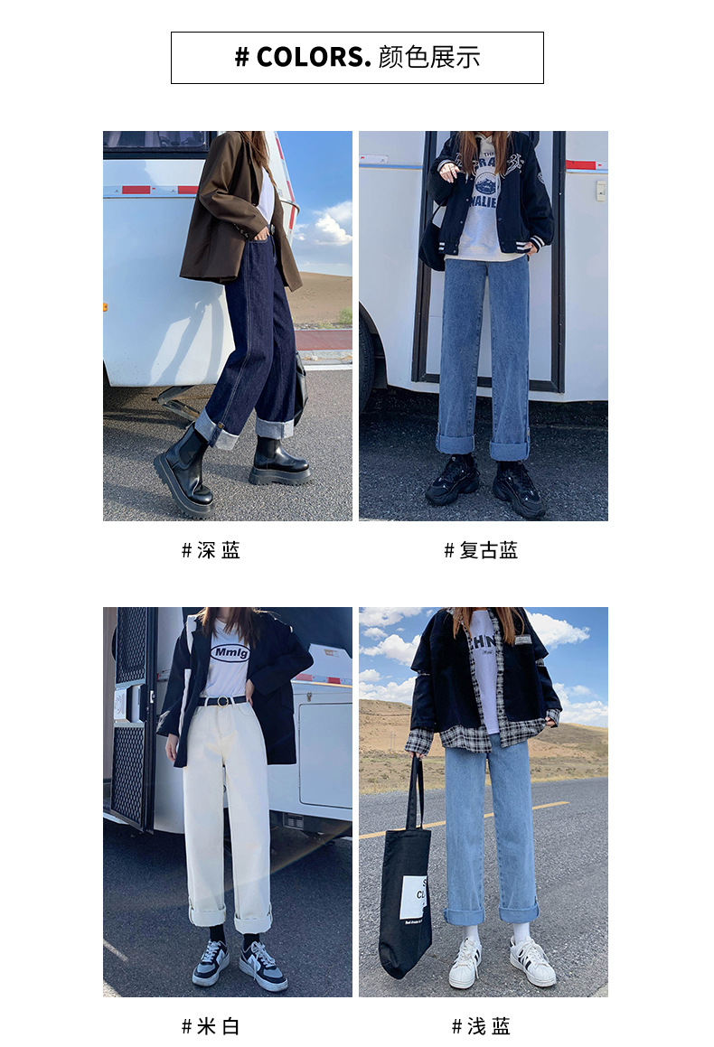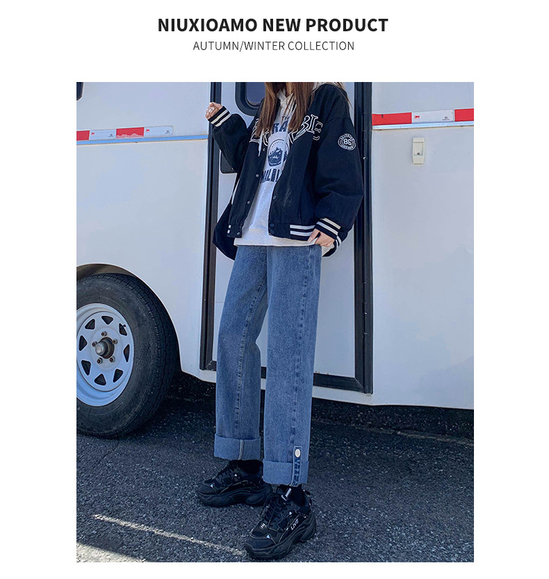 다크 블루 스트레이트 데님 팬츠 여성용 봄 가을 2025 신상 하이웨이스트 루즈핏 홍콩 스타일 와이드 팬츠 키 작은 분들을 위한 슬림핏스토어 가기