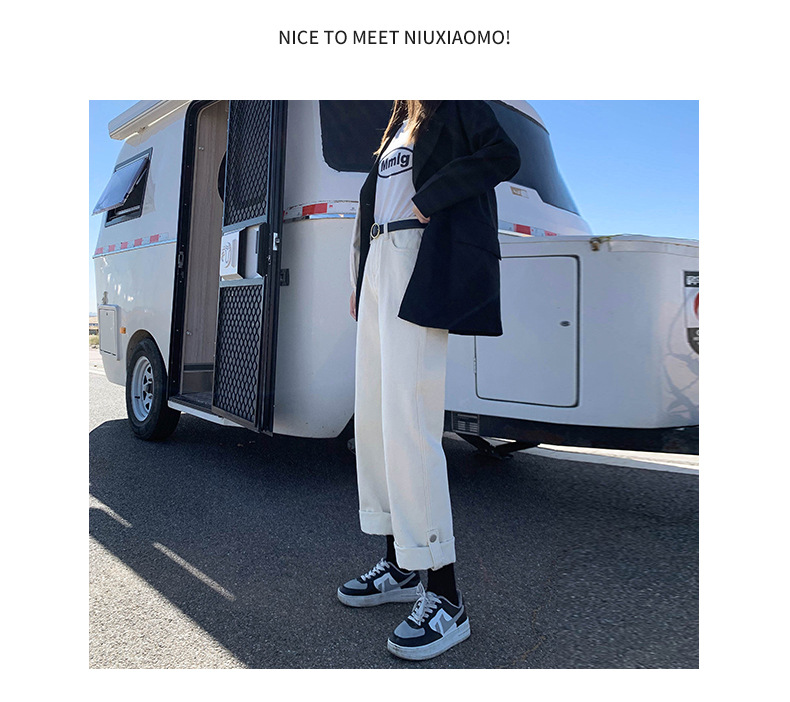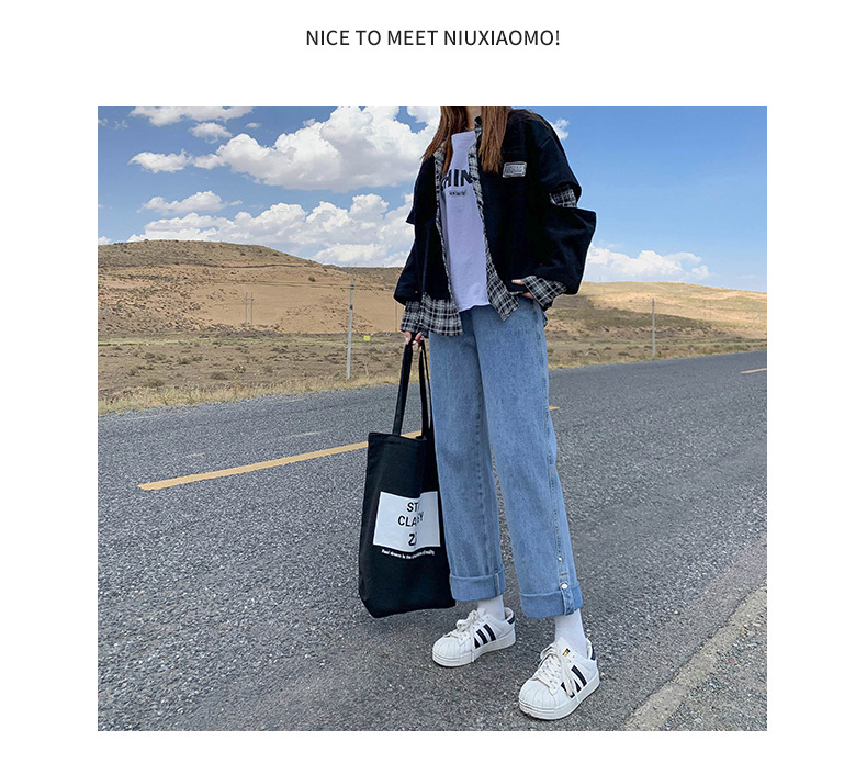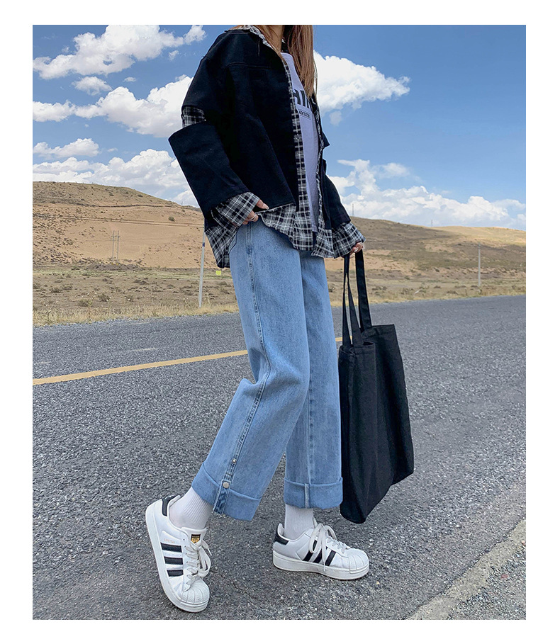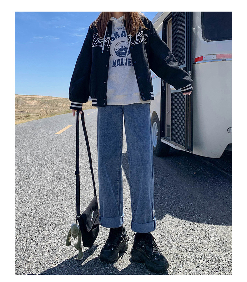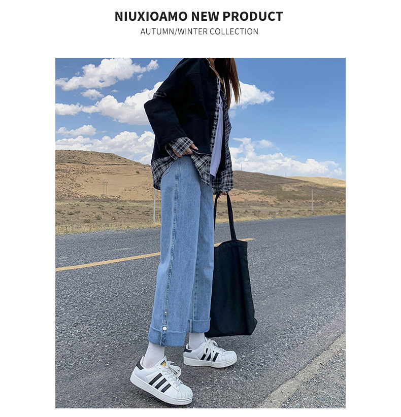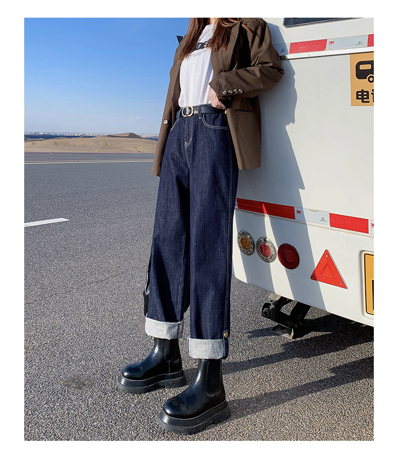 다크 블루 스트레이트 데님 팬츠 여성용 봄 가을 2025 신상 하이웨이스트 루즈핏 홍콩 스타일 와이드 팬츠 키 작은 분들을 위한 슬림핏스토어 가기